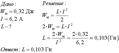 Определить индуктивность катушки, если при токе 6,2 А её магнитное поле обладает энергией 0,32 Дж.