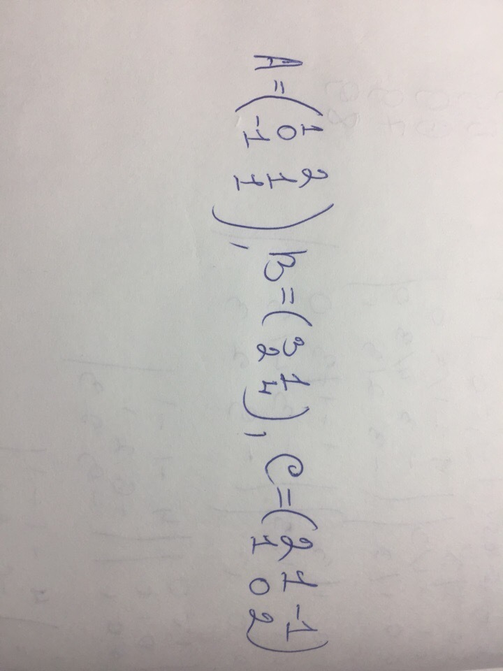 Заданы матрицы A,B и C. Вычислить: 1) ABC. 2) 2AT+C.