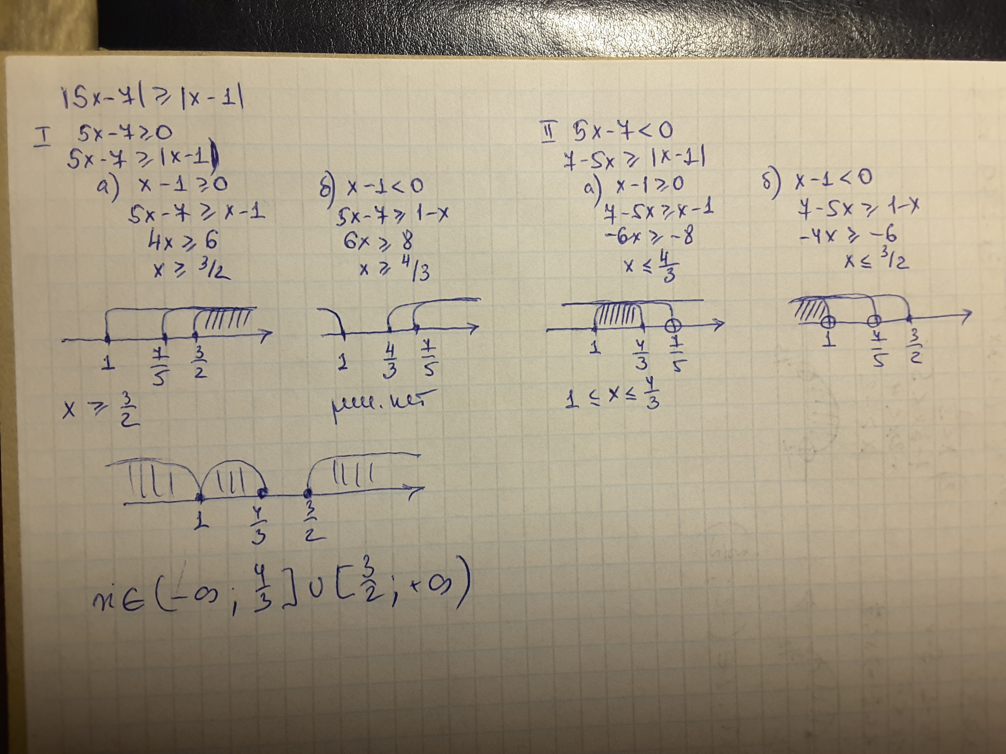 x∈(-∞ ; 3/2] ∪[ 4/3 ;+∞)