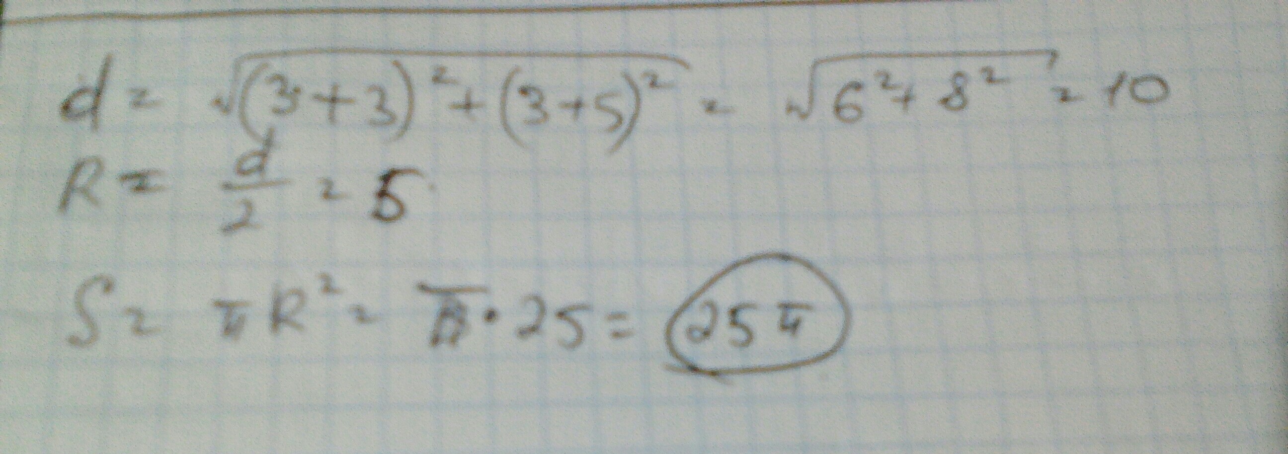 Вычислите площадь круга с конечными точками диаметра A(-3;3) и B(3;-5)