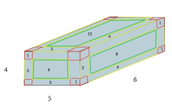Две грани — у кубиков с ребер, за исключением "вершинных" (желтый) - 36
