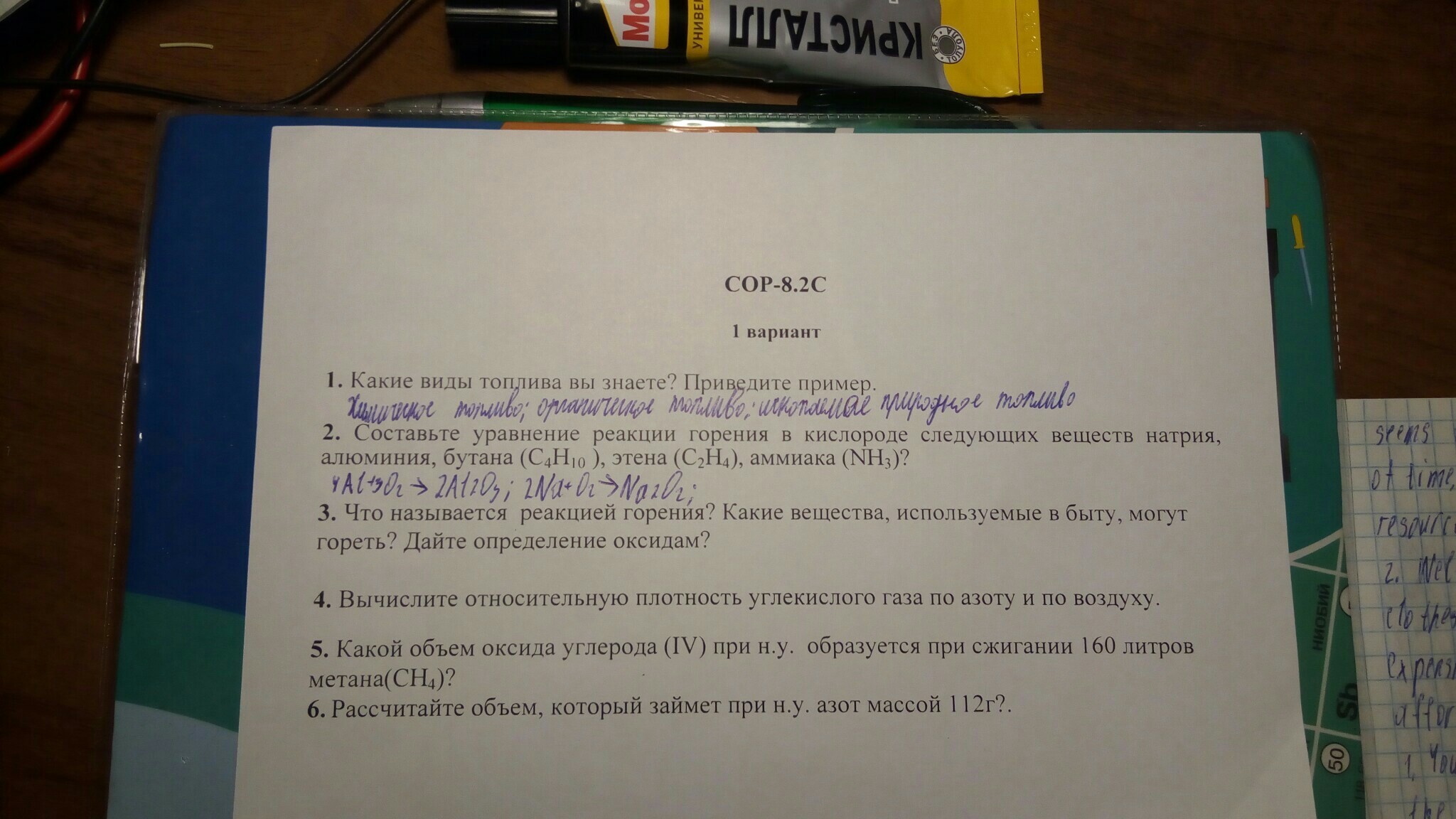 3.Реакциями горения называются химические реакции, протекающие с выделением большого количества теплоты и света.Может гореть пропан, который используется для газовых духовок.Оксиды-неорганические соединения, в которых кислород связан с другим элементом.