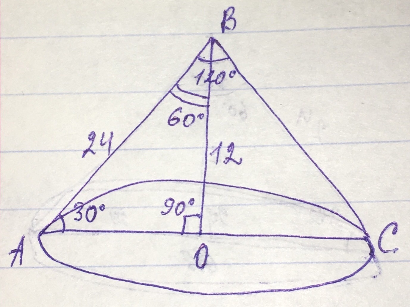 АО=√(24^2-12^2) =√(576-144) =√432 =12√3