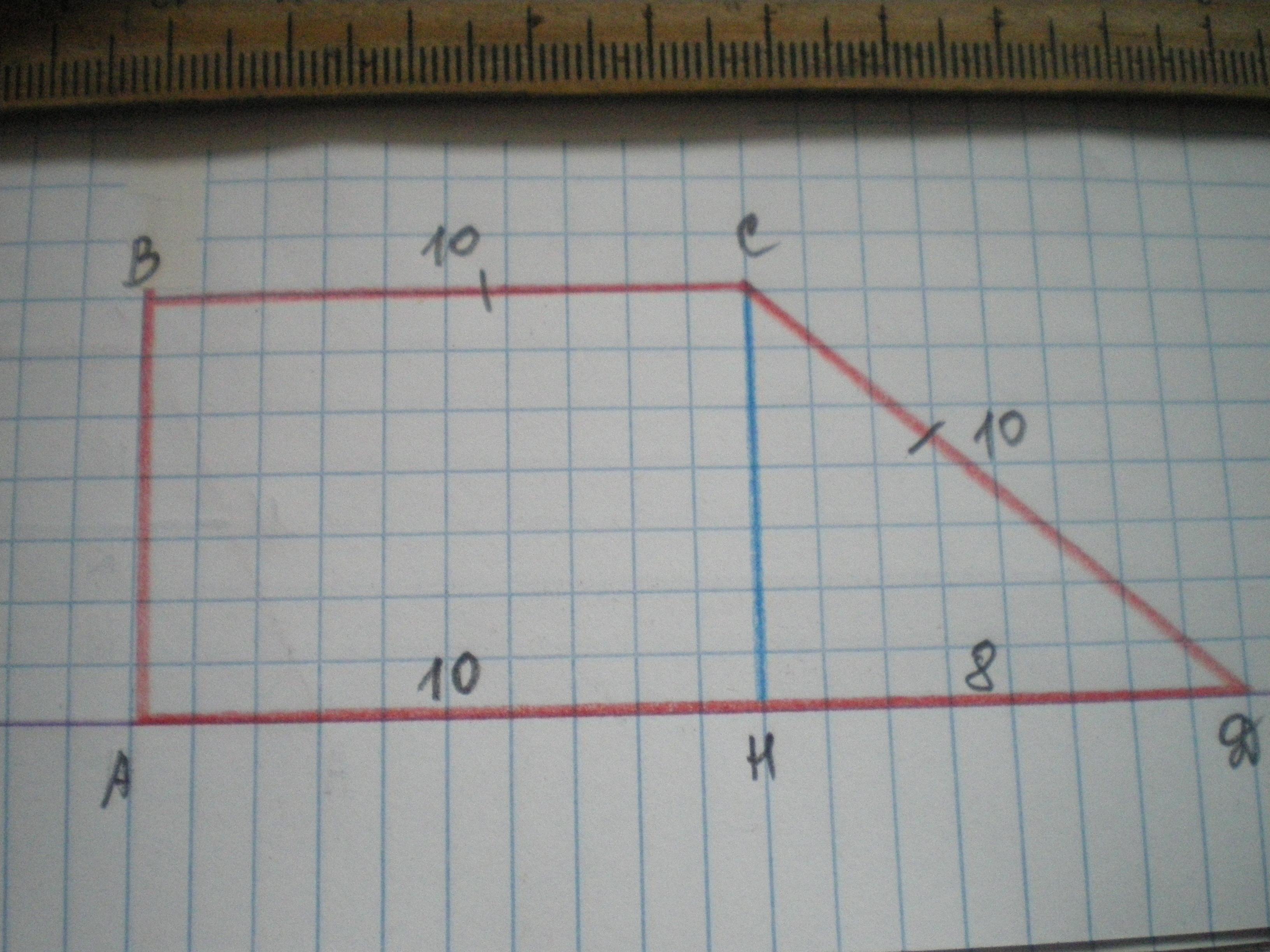 Дано: АВСD - трапеция,(AD || BC) ∠ A = 90, BC = CD = 10 см, AD = 18 см. Найдите площадь трапеции.