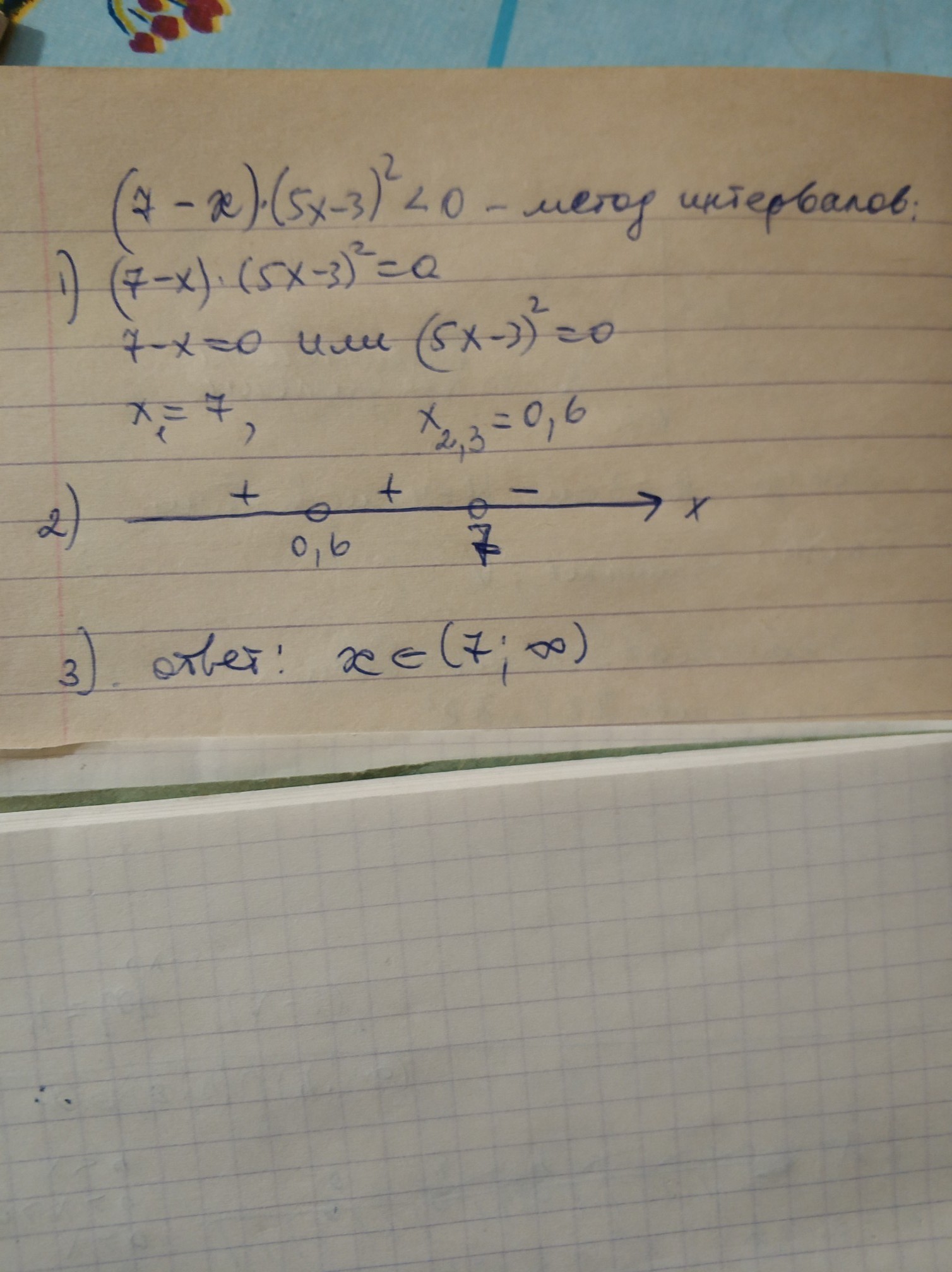 (7-x)(5x-3)^2 < 0 помогите пожалуйста