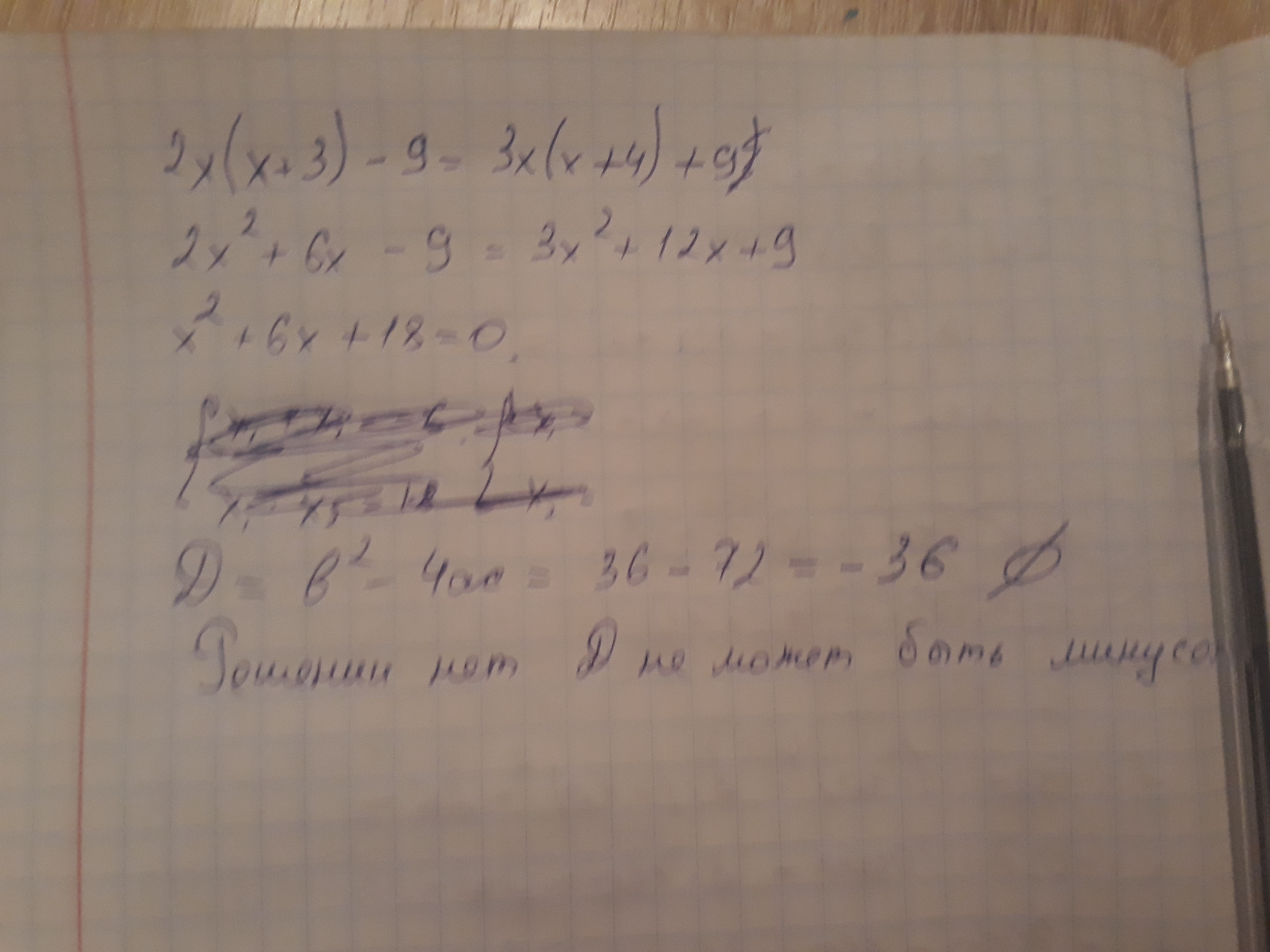 2x(x+3)-9=3x(x+4)+9 помогите пж