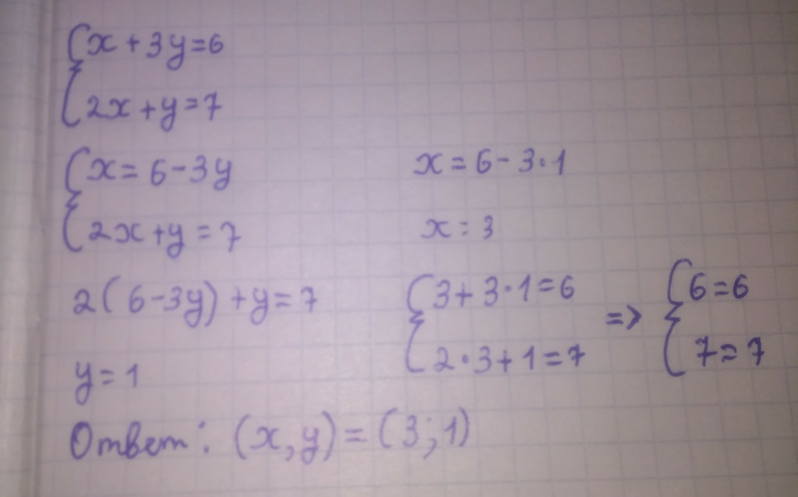 решите графически систему уравнения {x+3y=6 {2x+y=7