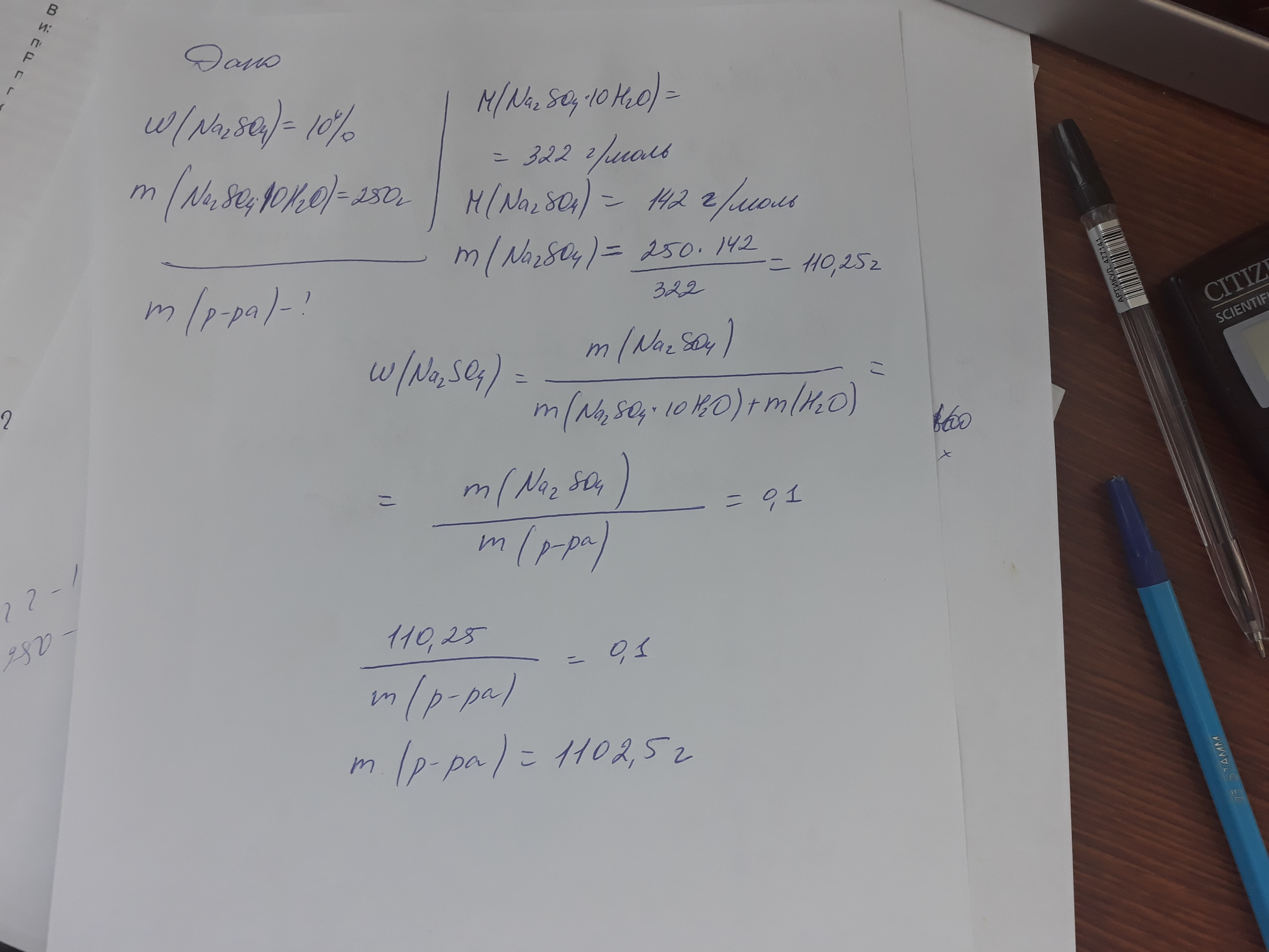 Для приготовления 10 %-го раствора Na2SO4 взято 250 г Na2SO4 . 10H2O.