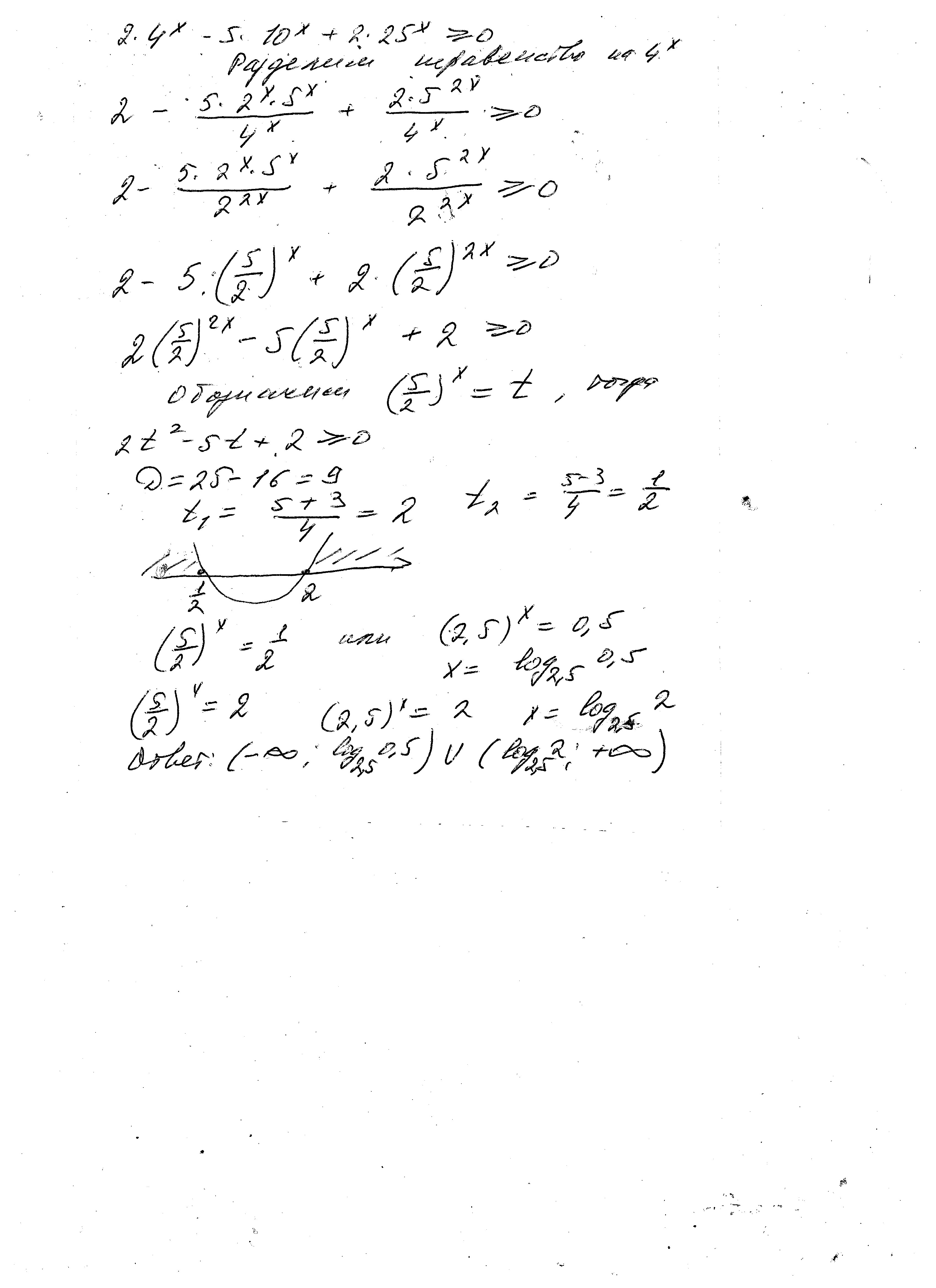 2*4(степень)х - 5*10(степень)х + 2*25(степень)х≥0
