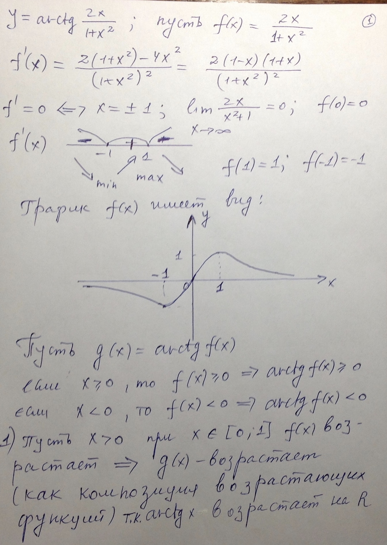 Помогите найти область значения y=arctg 2x/1+x²