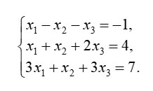 Прорешав первое или второе уравнение, мы получим x3=1, подставляем в любое из трех уравнений и находим x2=1