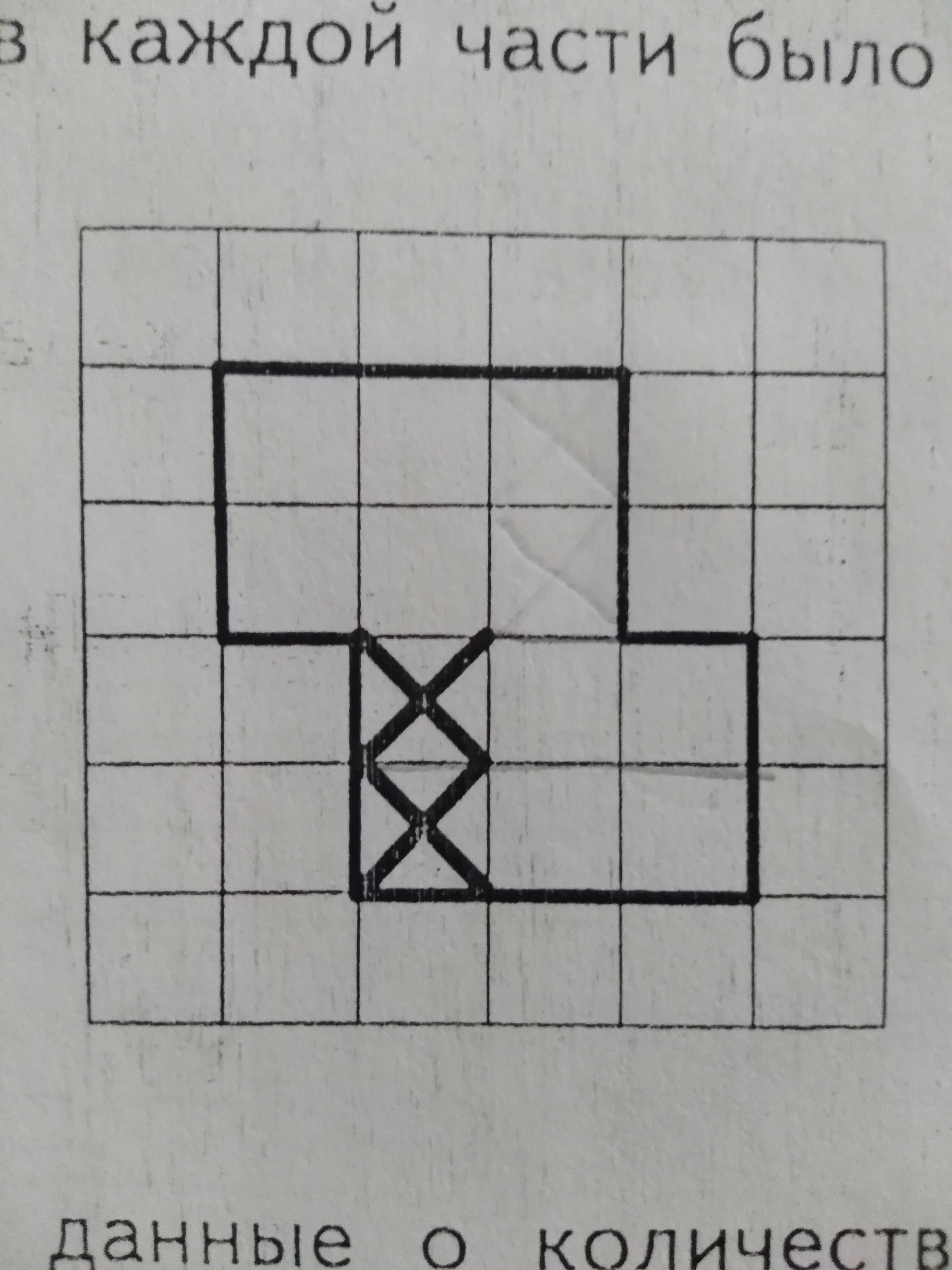 Найди периметр этой фигуры если сторона одной клетки 1 см.Раздели фигуру по границам клеток на две одинаковые части так,чтобы в каждой части было по одной отмеченной клетке.