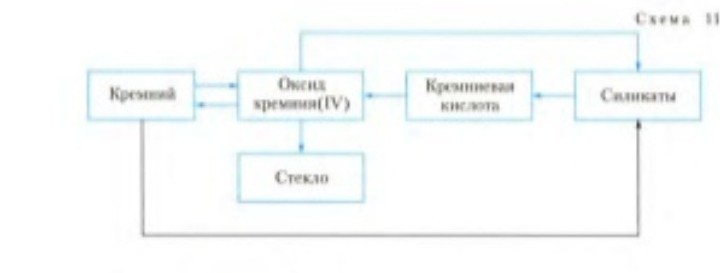 Si(кремний)⇄SiO₂[оксид кремния(IV)]→Na₂SiO₃(силикат натрия)→H₂SiO₃(кремниевая кислота)→Na₂SiO₃(силикат натрия)