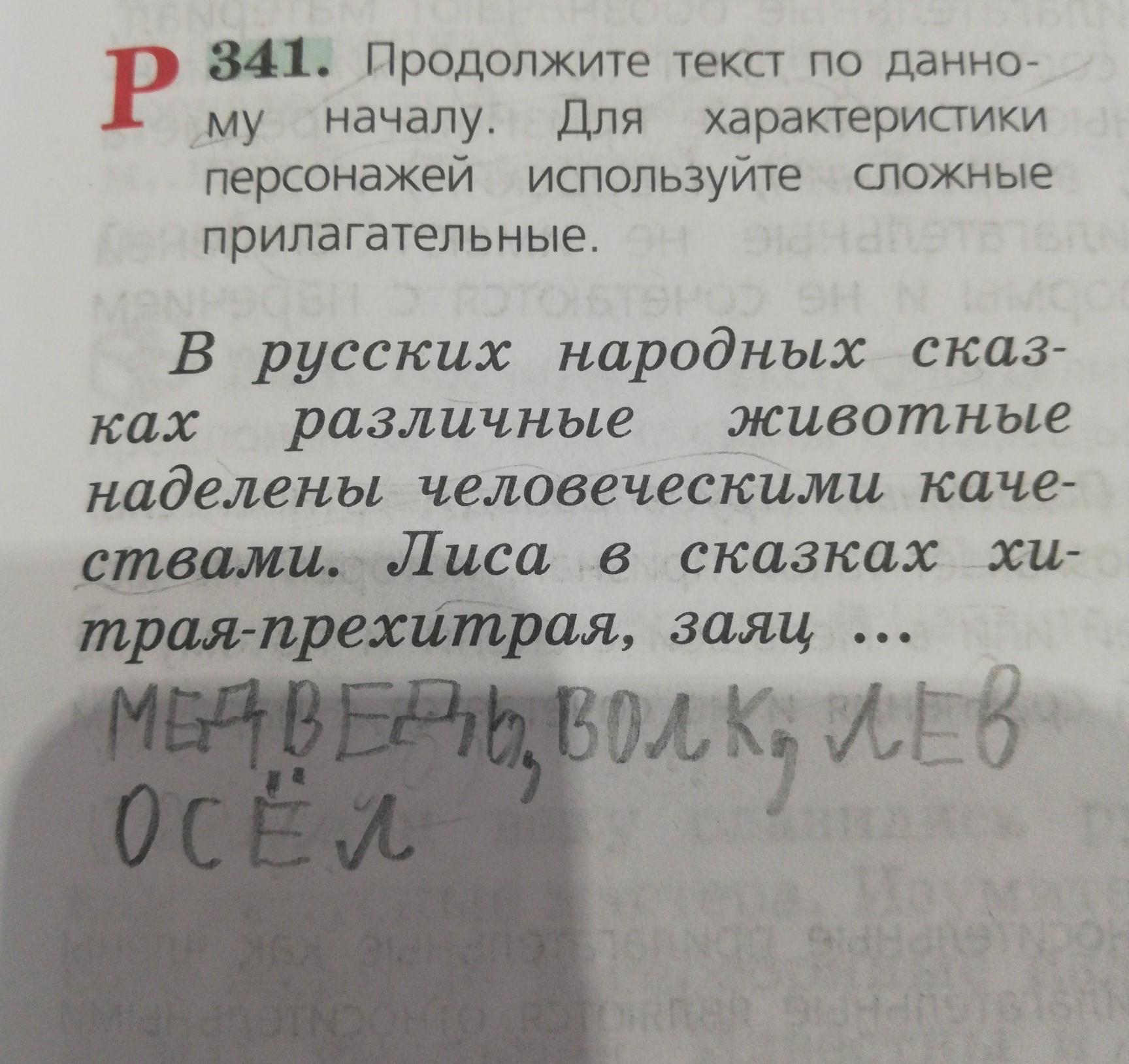заяц быстрый и уворотливый, мыдведь большой и грозный, волк глупый и голодный, лев храбрый и отважный, осёл добрый и правильный