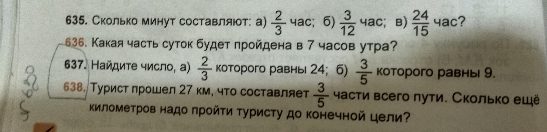635.а)60:3*2=40 минут б)60:12*3=5*3=15 минут в)60:15*24=96 минут