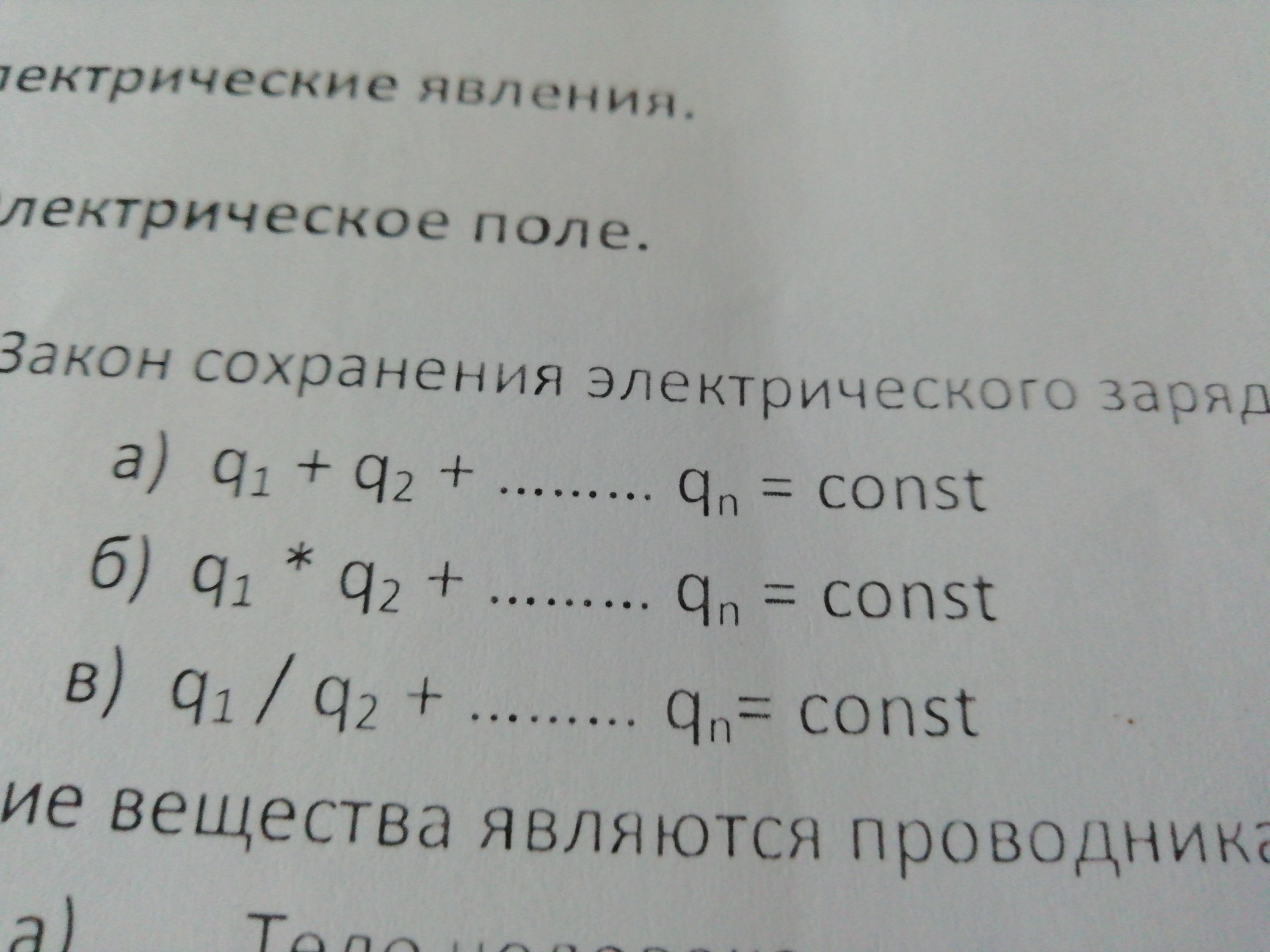 алгебраическая сумма Эл.зарядов не меняется при происходящих в ней процессах,т. е . равна константе