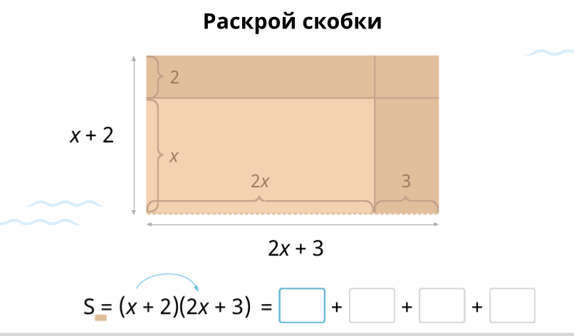 S = (x + 2)(2x + 3) = 2x² + 3x + 4x + 6 = 2x² + 7x + 6