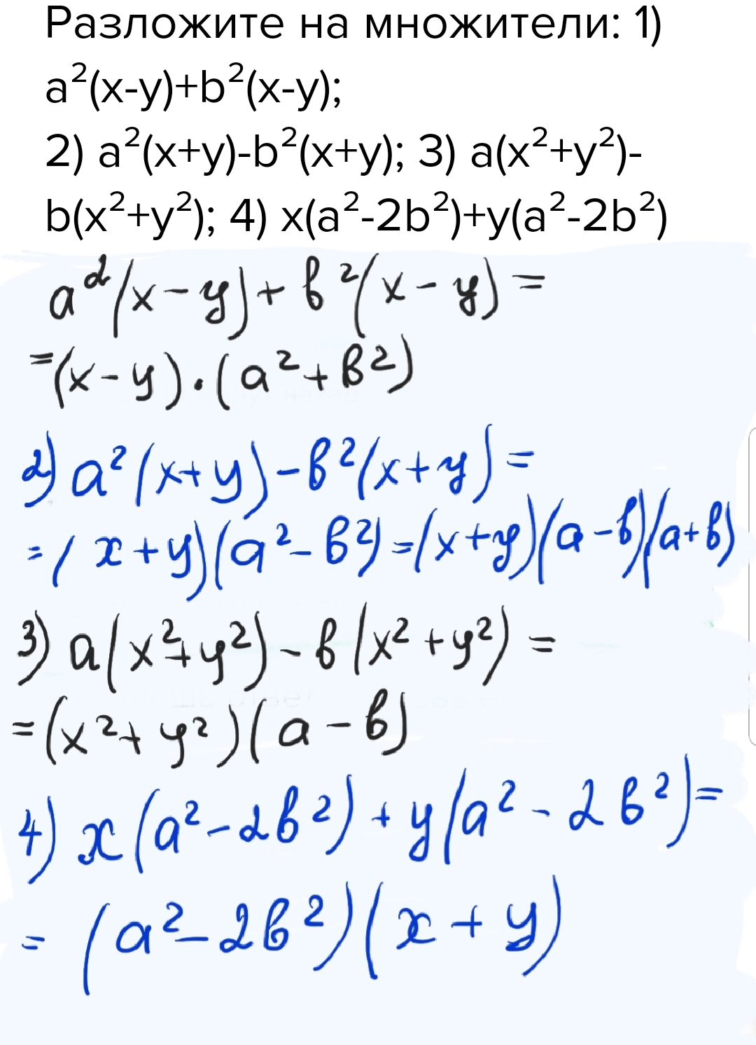 Разложите на множители: 1) a²(x-y)+b²(x-y);