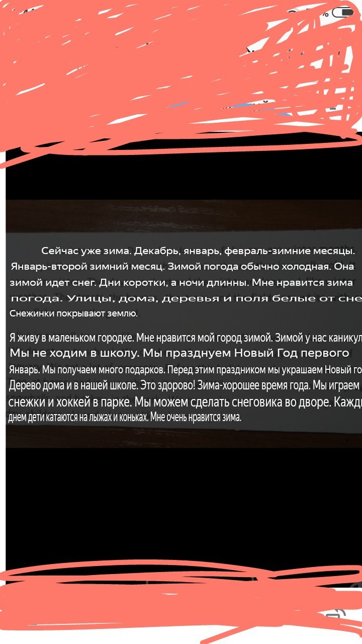 Сейчас зима. Декабрь, январь, февраль - зимние месяцы. Январь второй зимний месяц. Зимой погода обычно холодная. Зимой идет снег. Дни короткие, а ночи длинные. Мне нравится зимняя погода. Улицы, дома, деревья и поля белые от снега. Снежинки покрывают землю. Я живу в маленьком городе. Мне нравится мой город зимой. У нас каникулы зимой. Мы не ходим в школу. Мы празднуем Новый год первого января. Мы получаем много подарков. Перед этим праздником мы украшаем новогоднюю елку дома и в нашей школе. Это просто супер! Зима это хорошее время года. Мы играем в снежки и хоккей в парке. Мы можем сделать снеговика во дворе. Каждый день дети катаются на лыжах и катаются на коньках. Я очень люблю зиму.