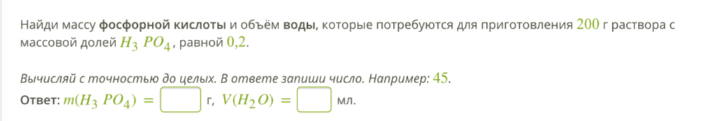 Ответ: 40 г фосфорной кислоты и 160 мл воды.
