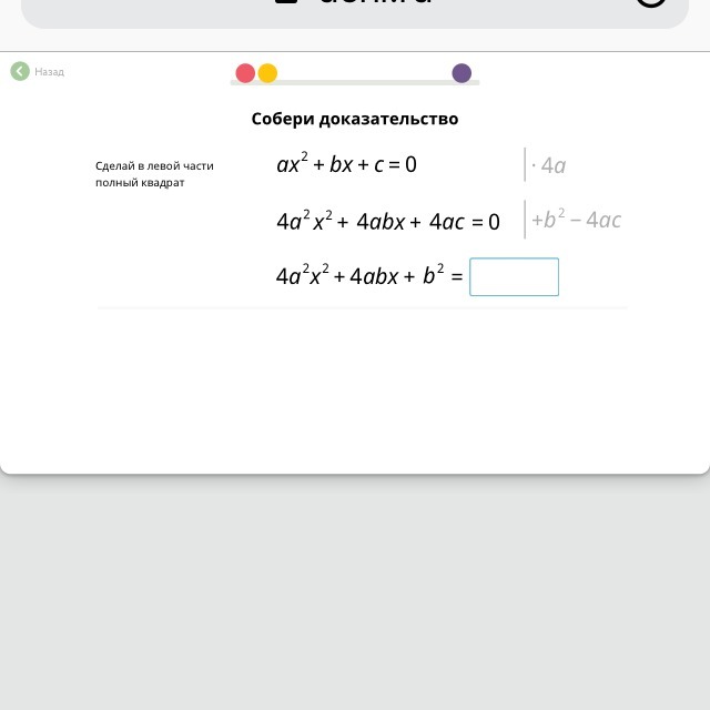 Прибавим к правой части нашего уравнения b^2-4ac. Получим: