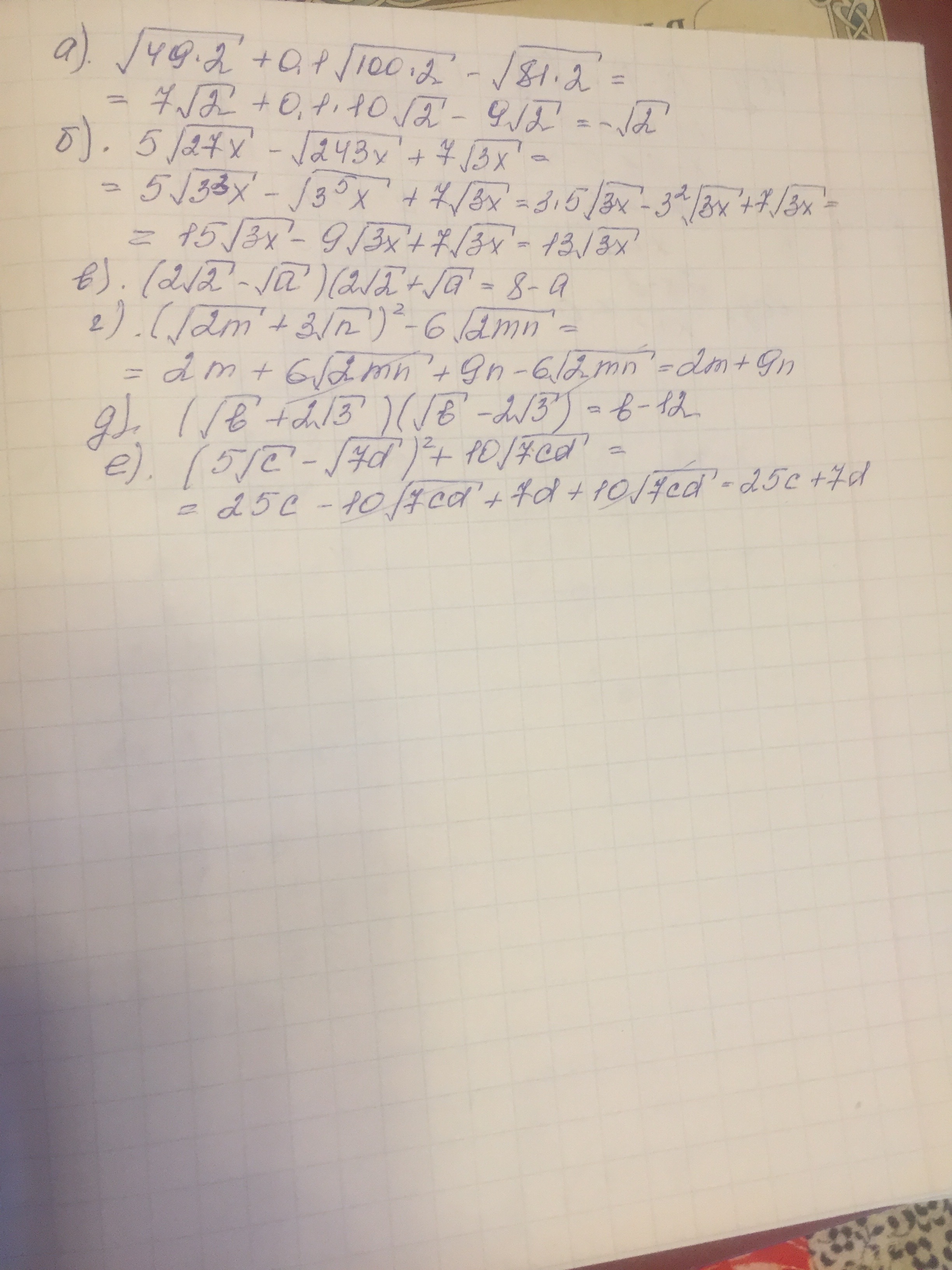 г)(√2m+3√n)²-6√2mn