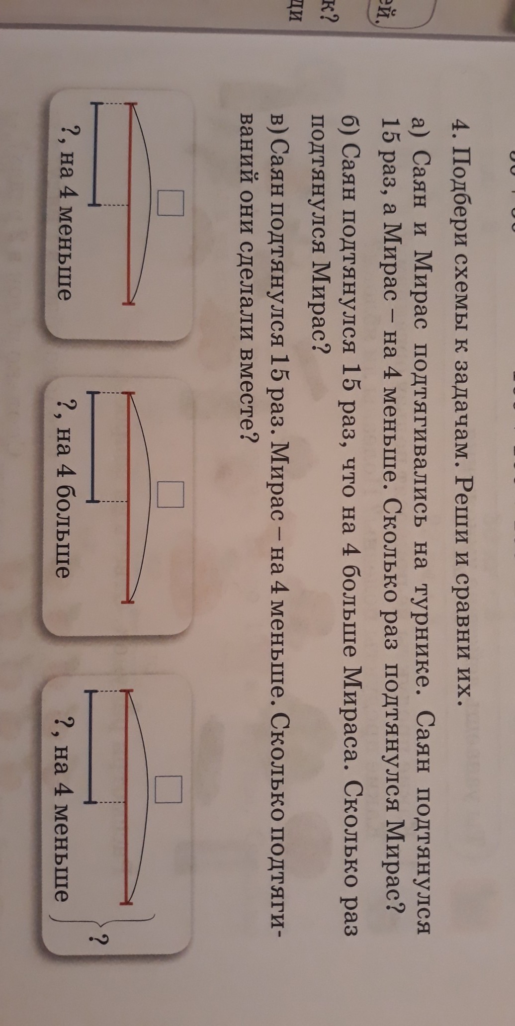 Мирас подтянулся на четыре меньше значит 15-4=11, а вместе 11+15=26