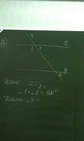 Прямая z пересекает прямую x и прямую y,x\\y. угол 1 +угол 2 =100°
