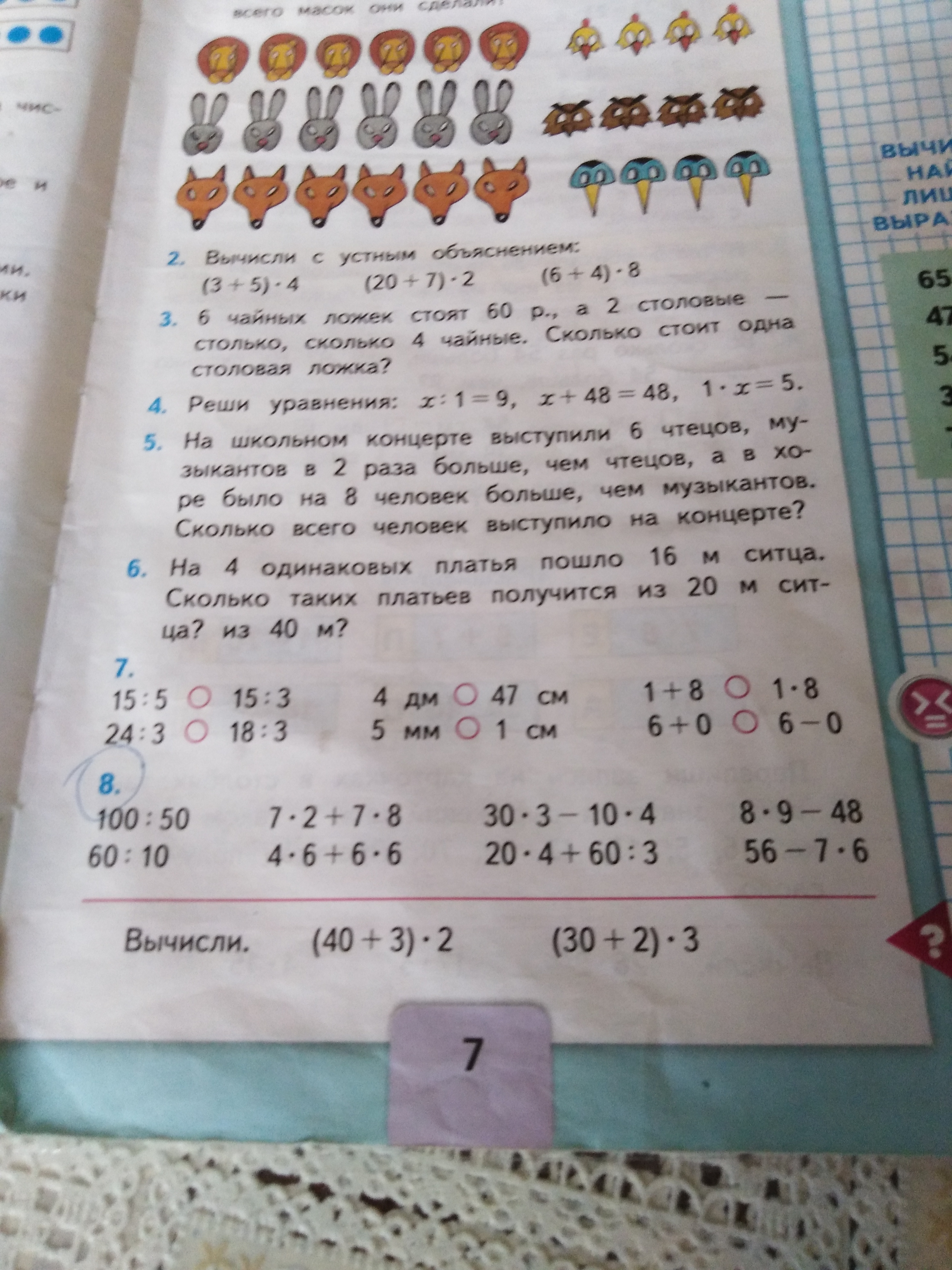 Математика 3 класс учебник 2 часть номер 6 стр 7 помогите решить На 4 одинаковых платья пошло 16 м ситца Сколько таких платьев получиться из 20 м ситца из 40 м?