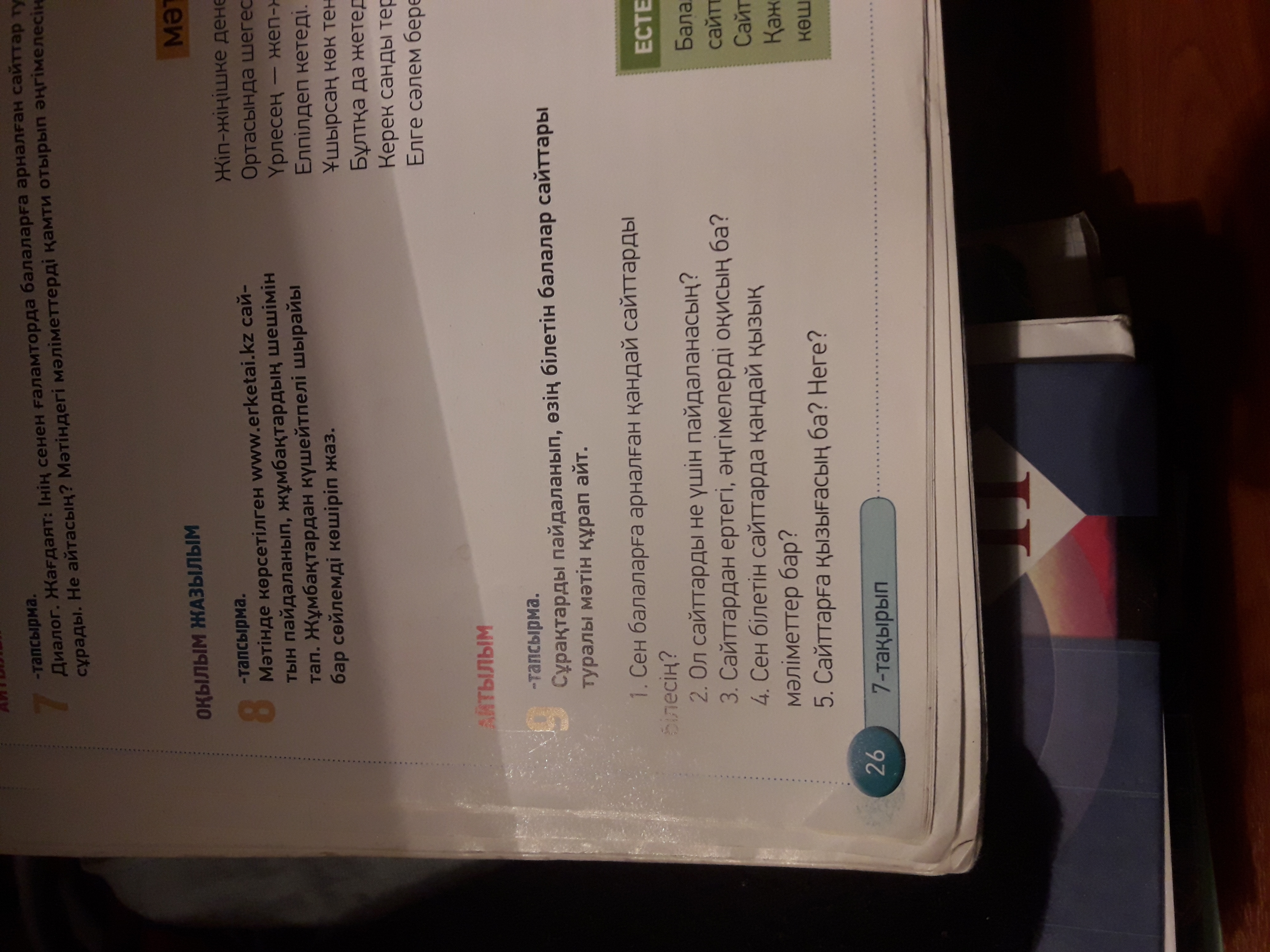 сұрақтарды пайдаланып, өзің білетін балалар сайттарды туралы мəтін құрап айт
