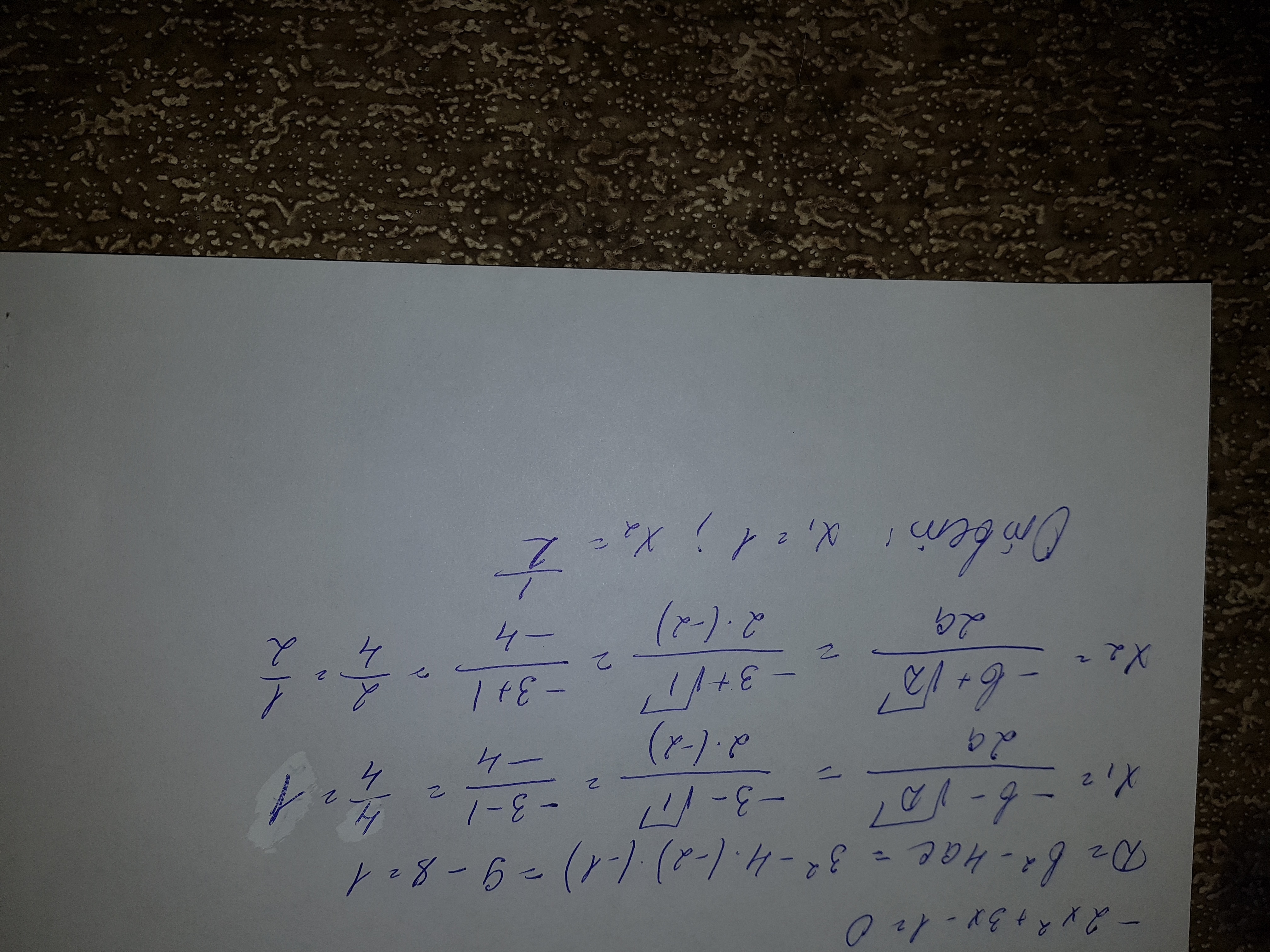 При каких x значение трехчлена -2xв квадрате +3x-1 равна нулю?_