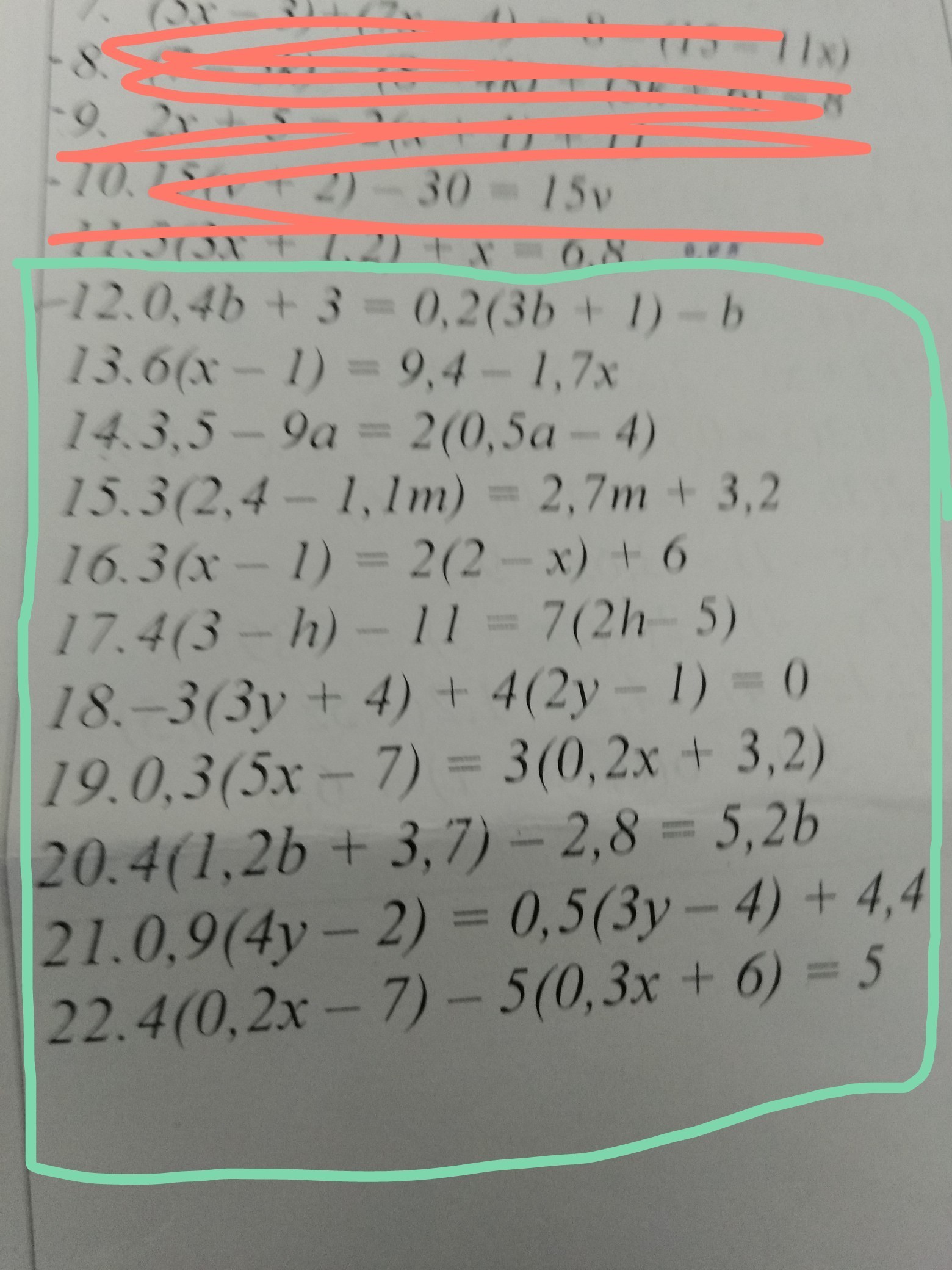 19) 0,3(5x-7) =3(0,2x+3,2)