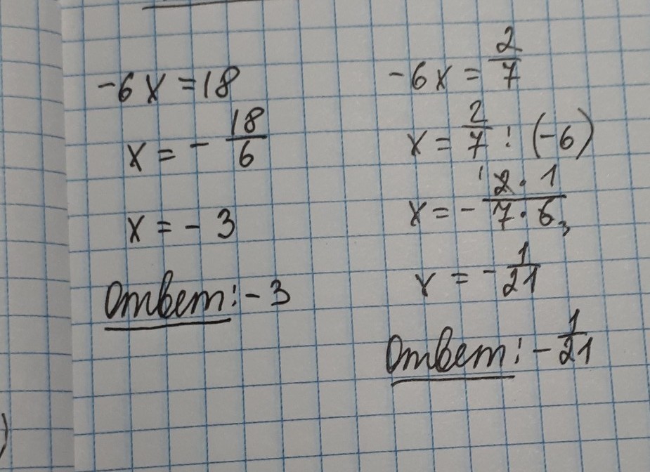 Решить линейное уравнение -6x=18 -6x=2/7. -1,2/3x=-2,1/3