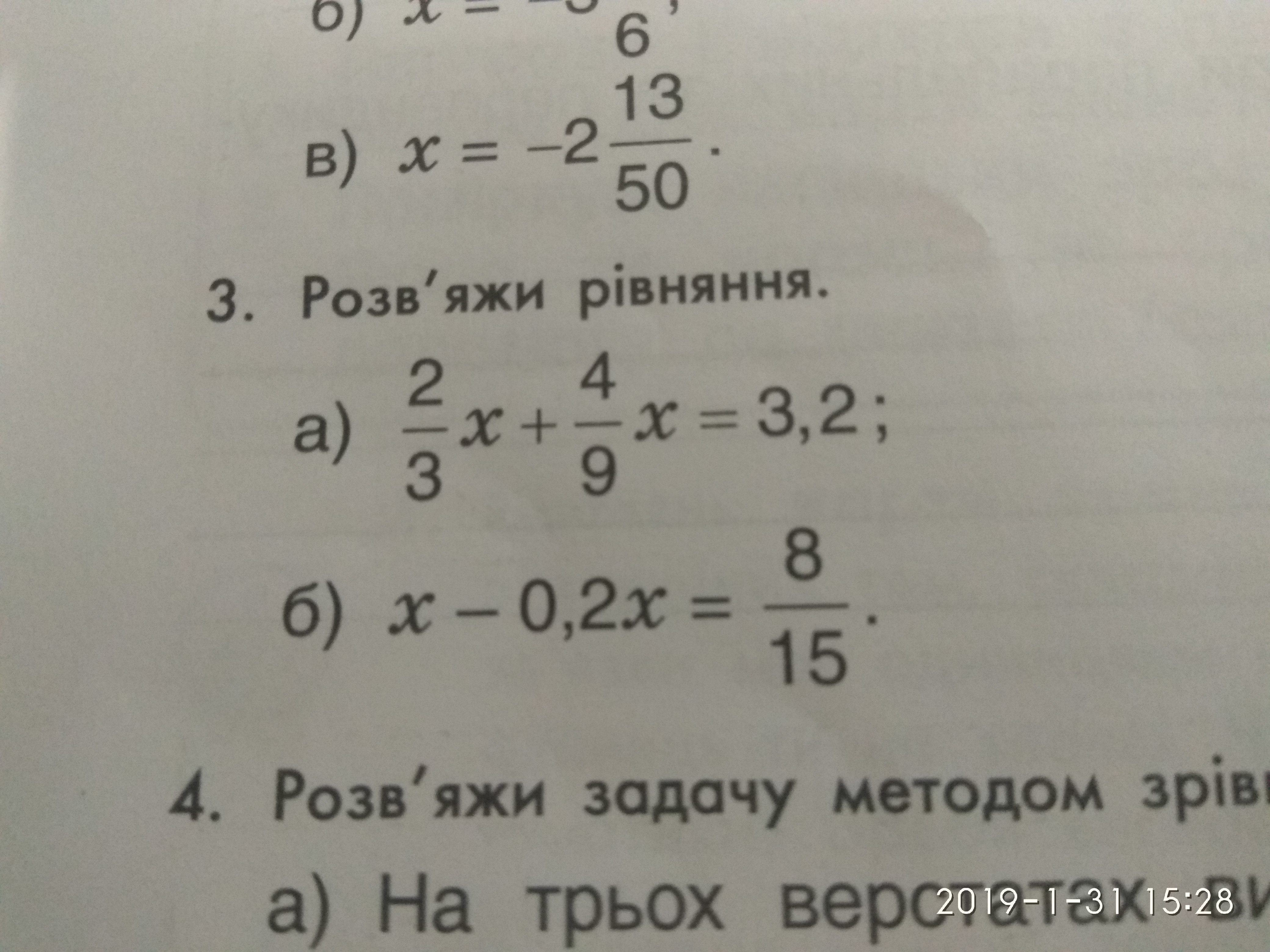 /-дробь 2/3х+4/9х=3,2. 6/9х+4/9х=3,2. 10/9х=3,2. х=3,2:10/9. х=2 22/25