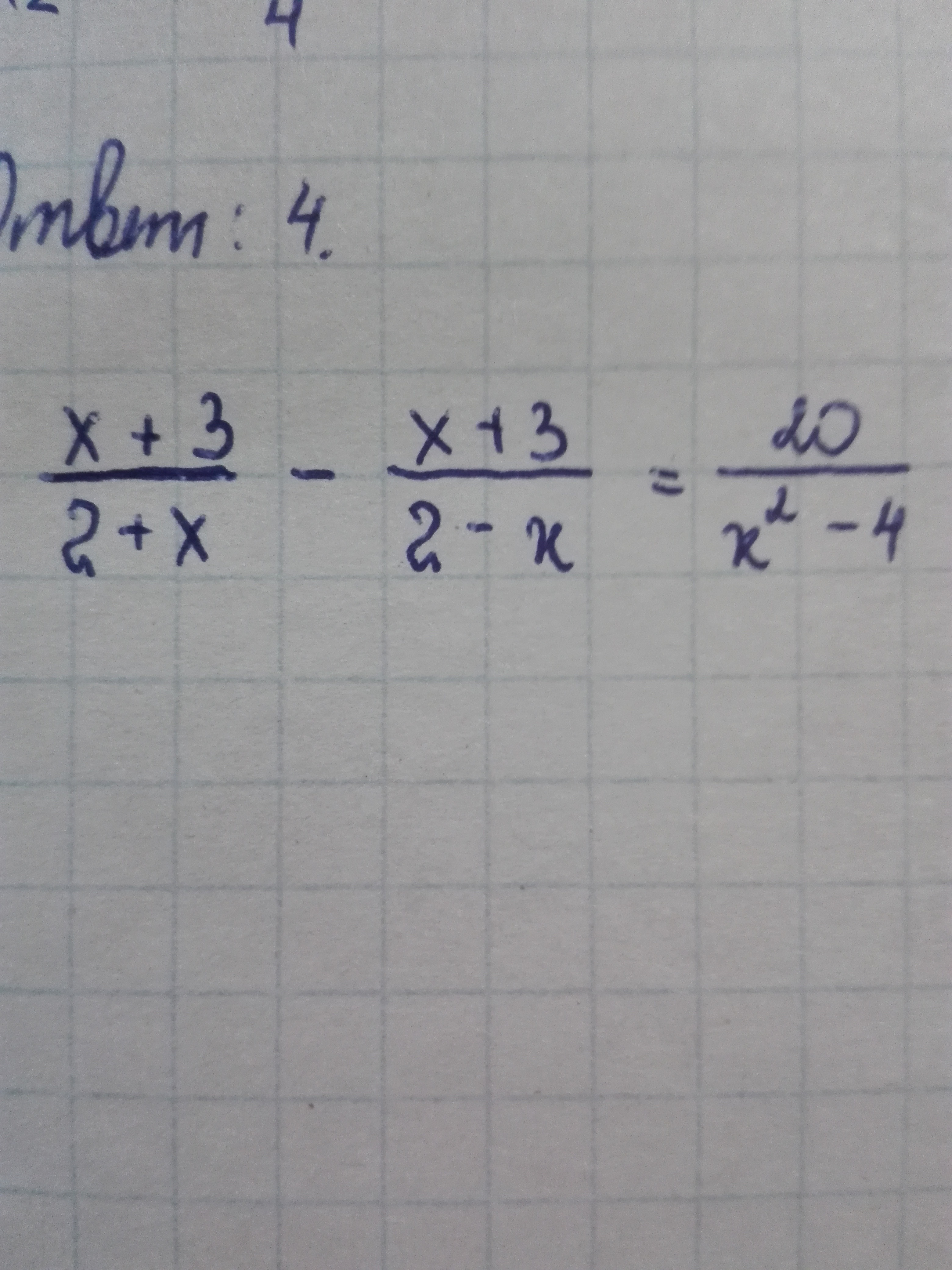 Объясните, пожалуйста, где поставить минус чтобы стало не х²-4, а 4-х² (чтобы привести к общему знаменателю) или там нужно другое решение? Если другое решение, то пожалуйста, напишите как последовательно решать