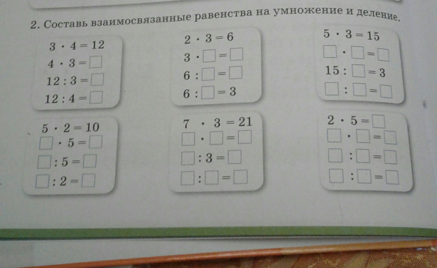 4*3=12 2*5=10 3*2=6 3*7=21 3*5=15