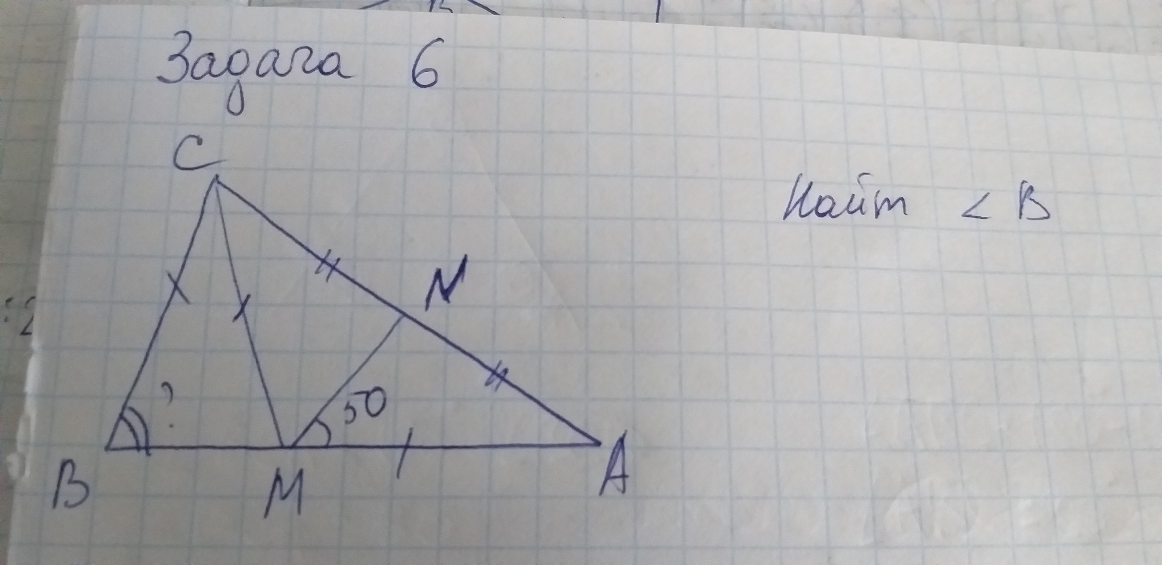 угол В= углу М т.к. треугольник ВСМ равнобедренный.(ВС=СМ)=угол в = углу м