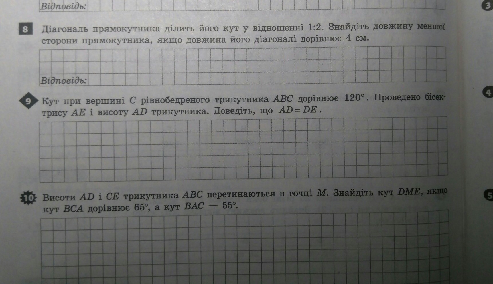 8) Диагональ прямоугольника делит его угол соотношение 1:2. Найдите длину меньшей стороны прямоугольника, если длина его диагонали равняется 4см.
