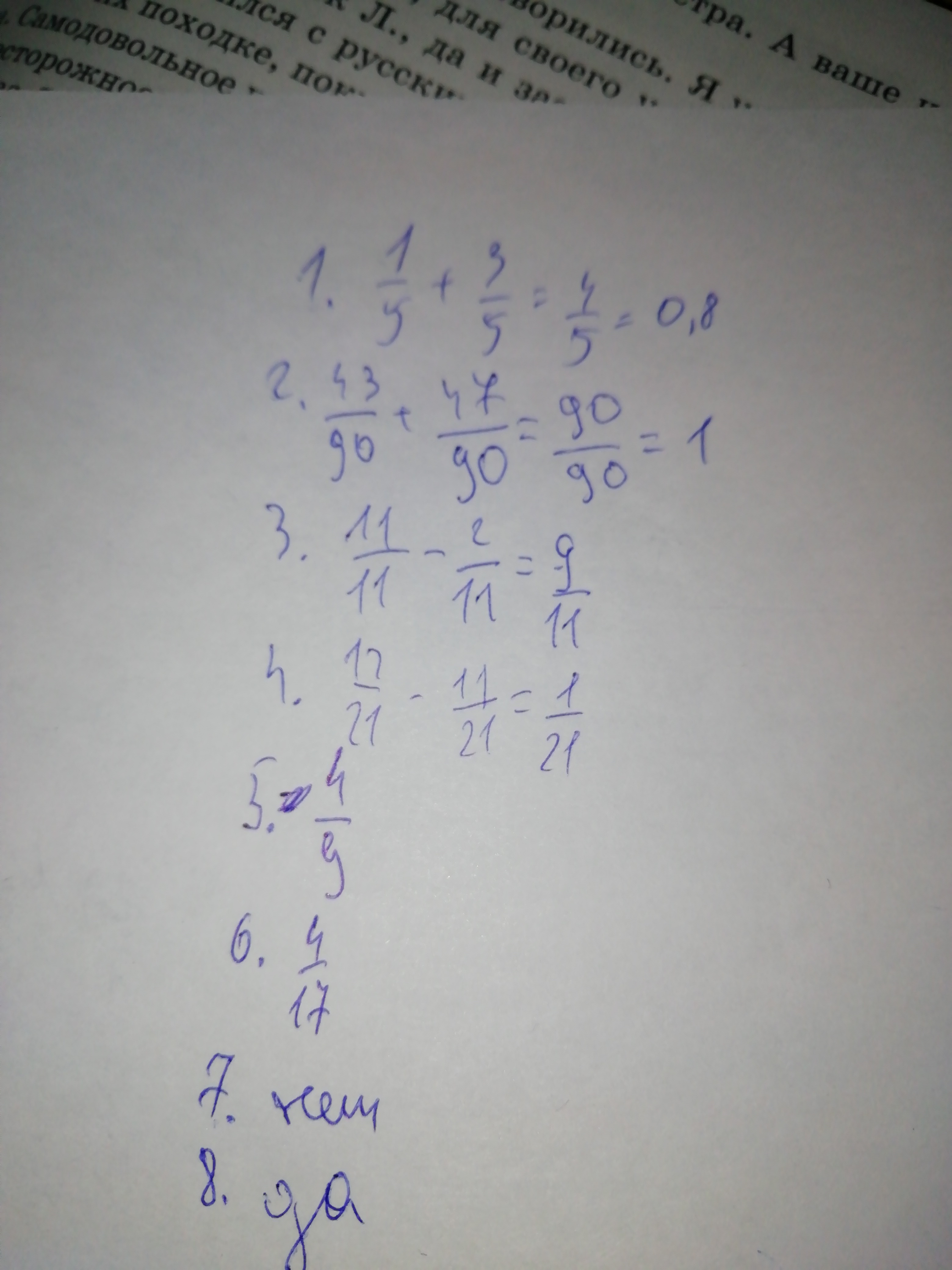 5. Какое число надо прибавить к одной девятой, чтобы получилось пять девятых?