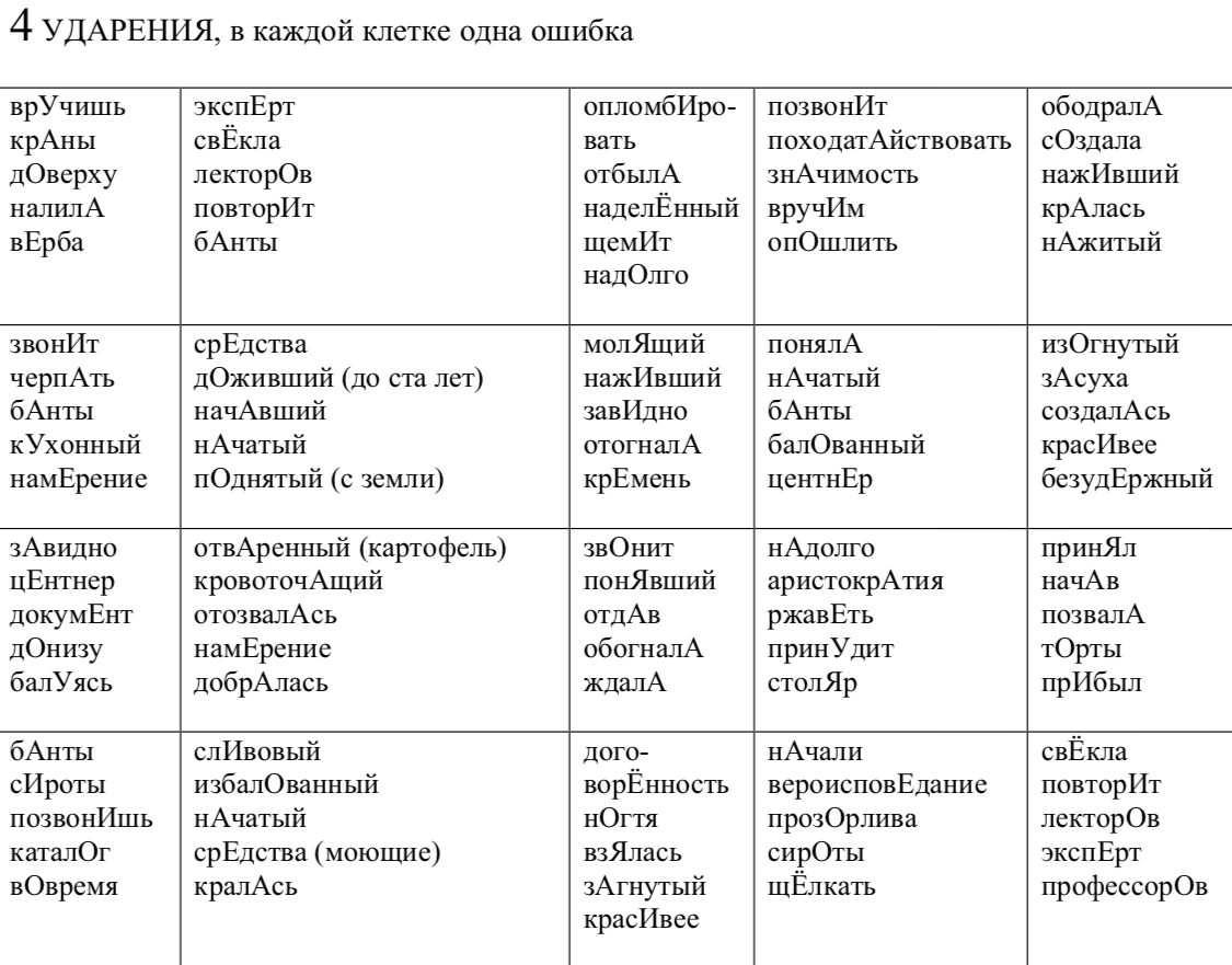 Помогите пожалуйста!!! Срочно в каждой таблице по одному не правильному ударению