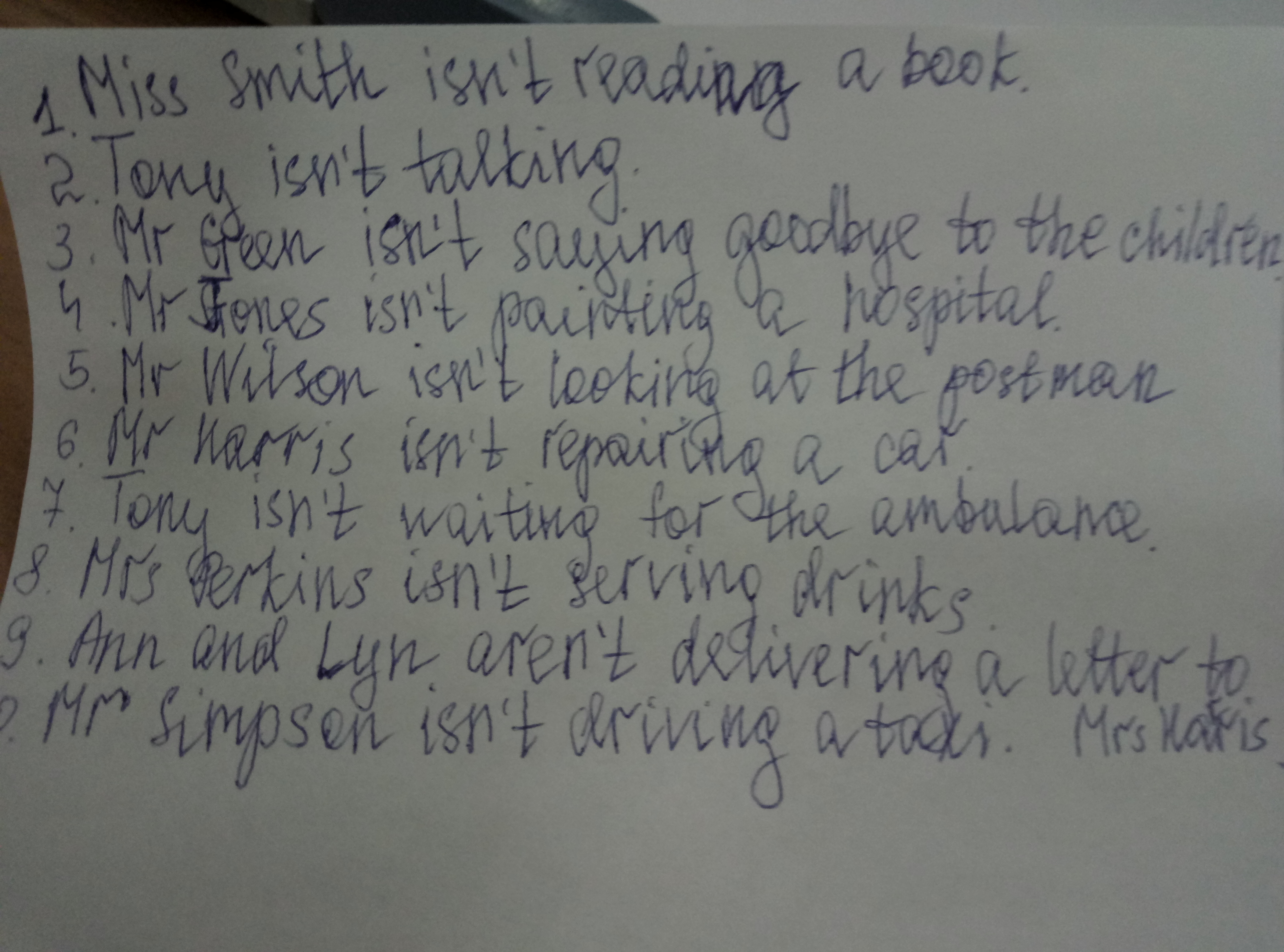 Все действие, которые люди выполняють в отрицатильной форме, потому что это не те действия, которые они делают на картинке, в фото все ответы