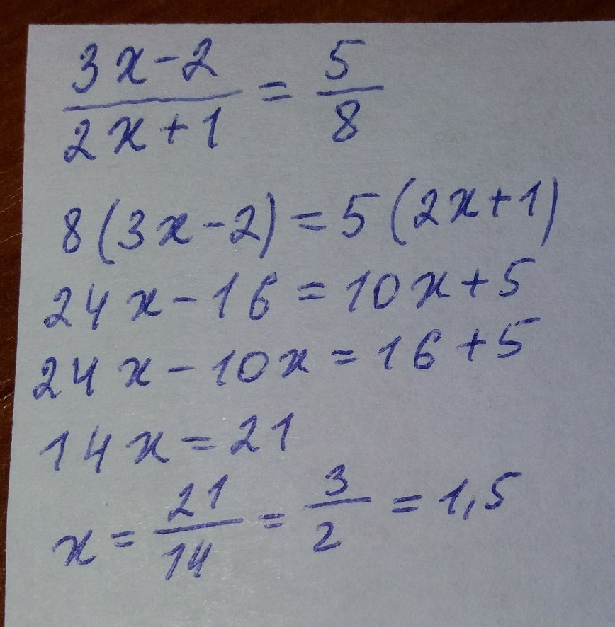 Решите уравнение 3x-2/2x+1=5/8