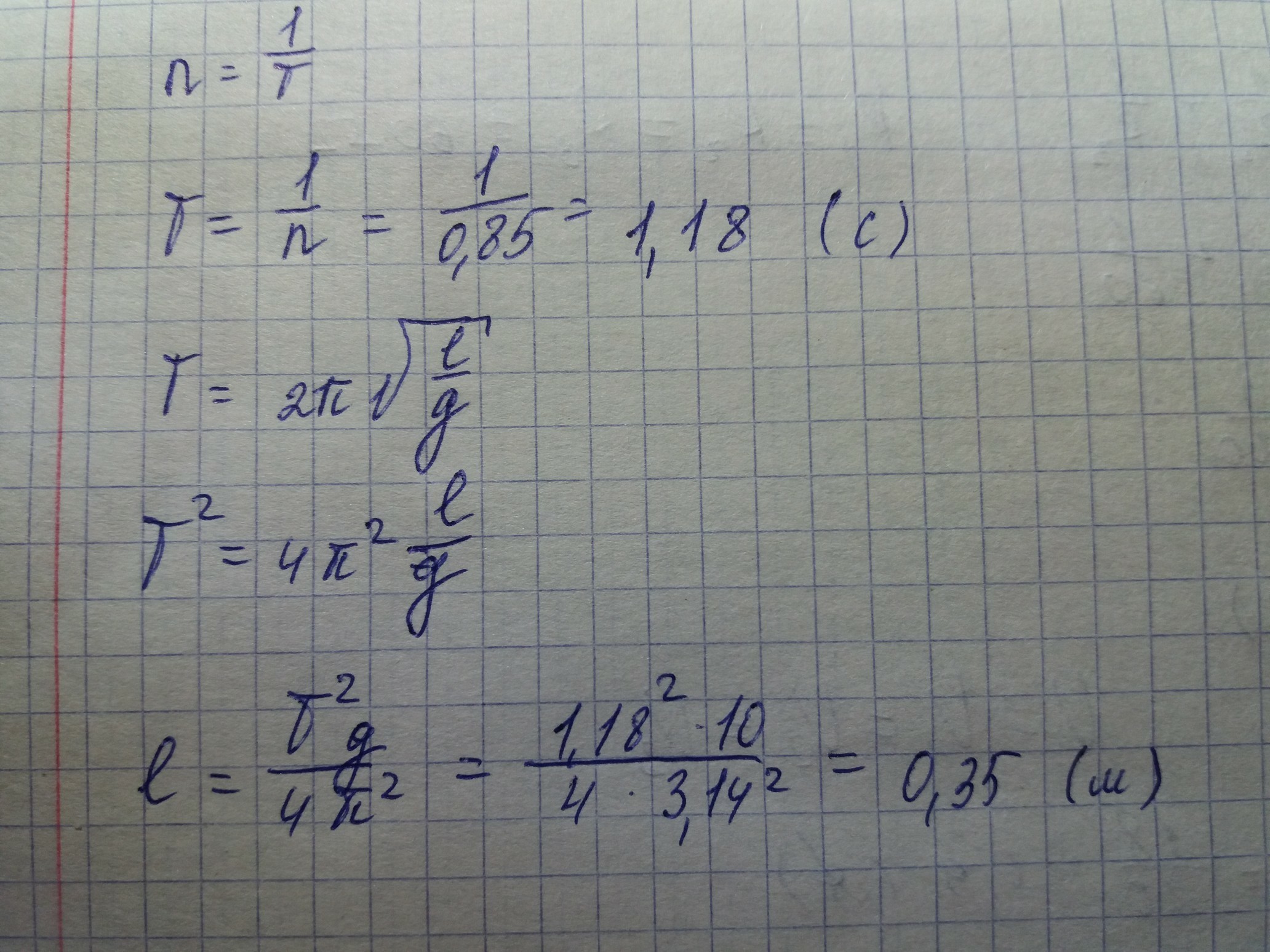 частота колебаний математического маятника 0,85Гц найти период и длину нити маятника