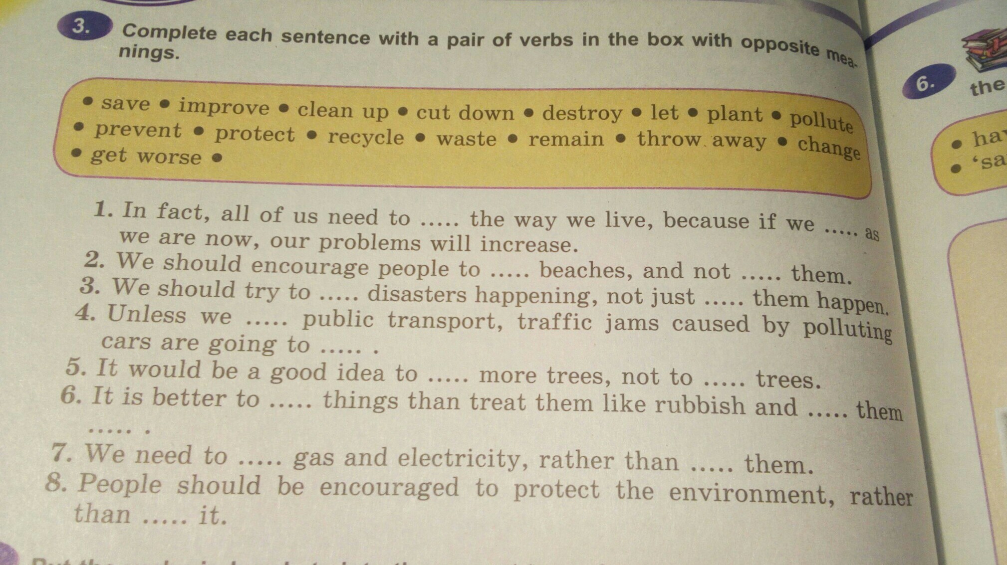 Complete each sentence with a pair of verbs in the box with opposite meanings.