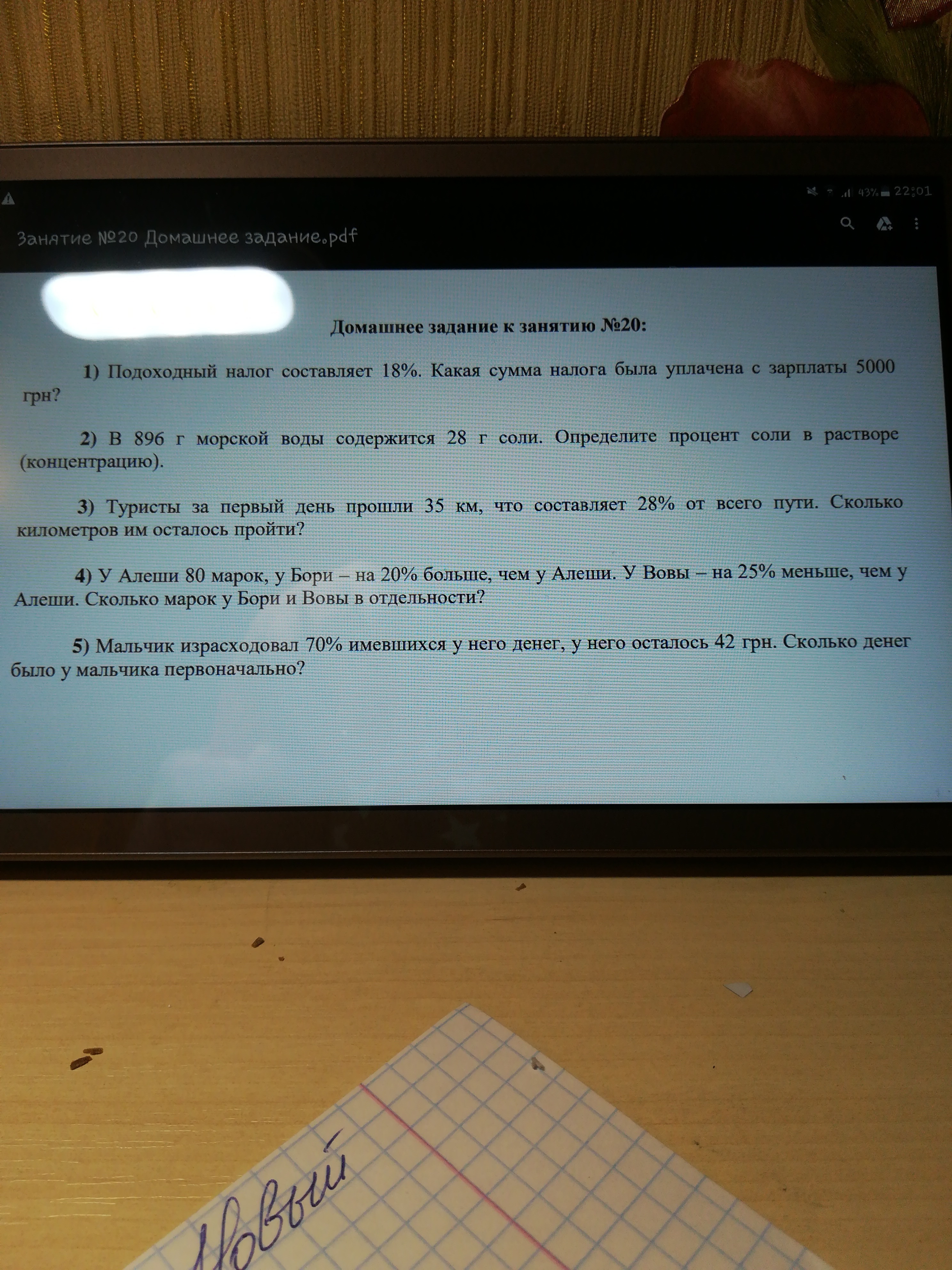 В задании 4: для начала найдём 20% от марок Алёши,НА КОТОРЫЕ БОЛЬШЕ( значит сложение) у Бори т.е 80* 20/100=16, значит у Бори 80+16=96; теперь найдём аналогично 25%,НА КОТОРЫЕ МЕНЬШЕ ( значит сложение) у Вовы 80*0,25=20, значит у Вовы 80-20=60.