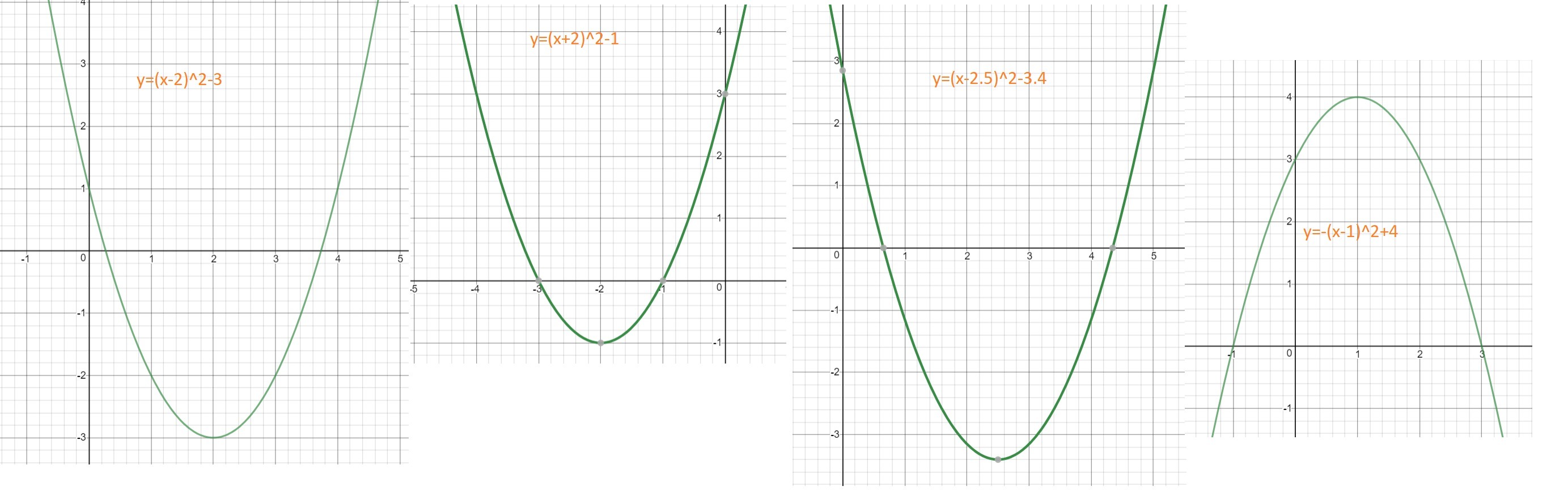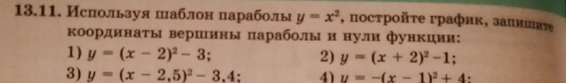 3) y=(x-2,5)^2-3,4 это парабола ветви которой направлены вверх, координаты её вершины: (2,5;-3,4). Пересекает оси в точках: