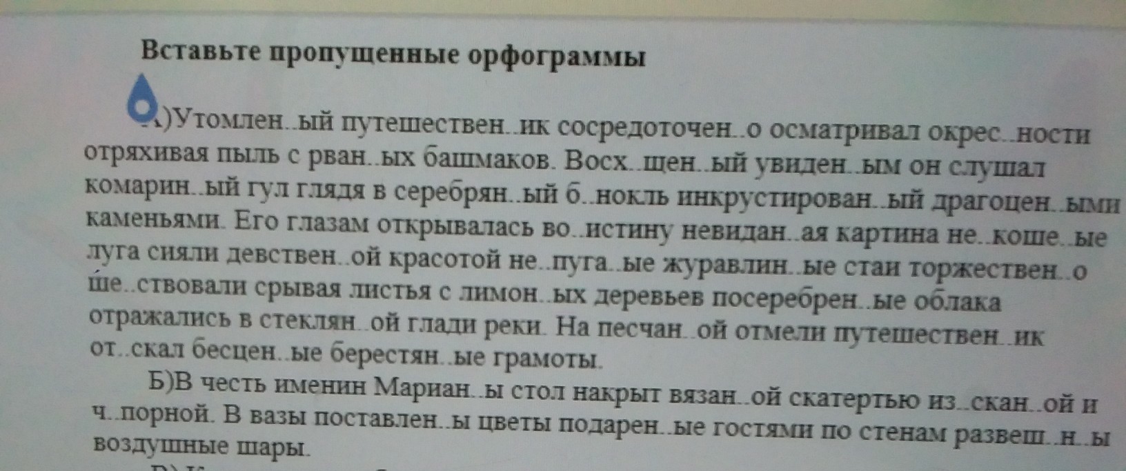 А) Утомленные,путешественник,сосредоточенно,окрестности,восхищённый, увиденным,серебряный,бинокль,инкрустированный,драгоценными,невиданная,нескошенные,девственно...