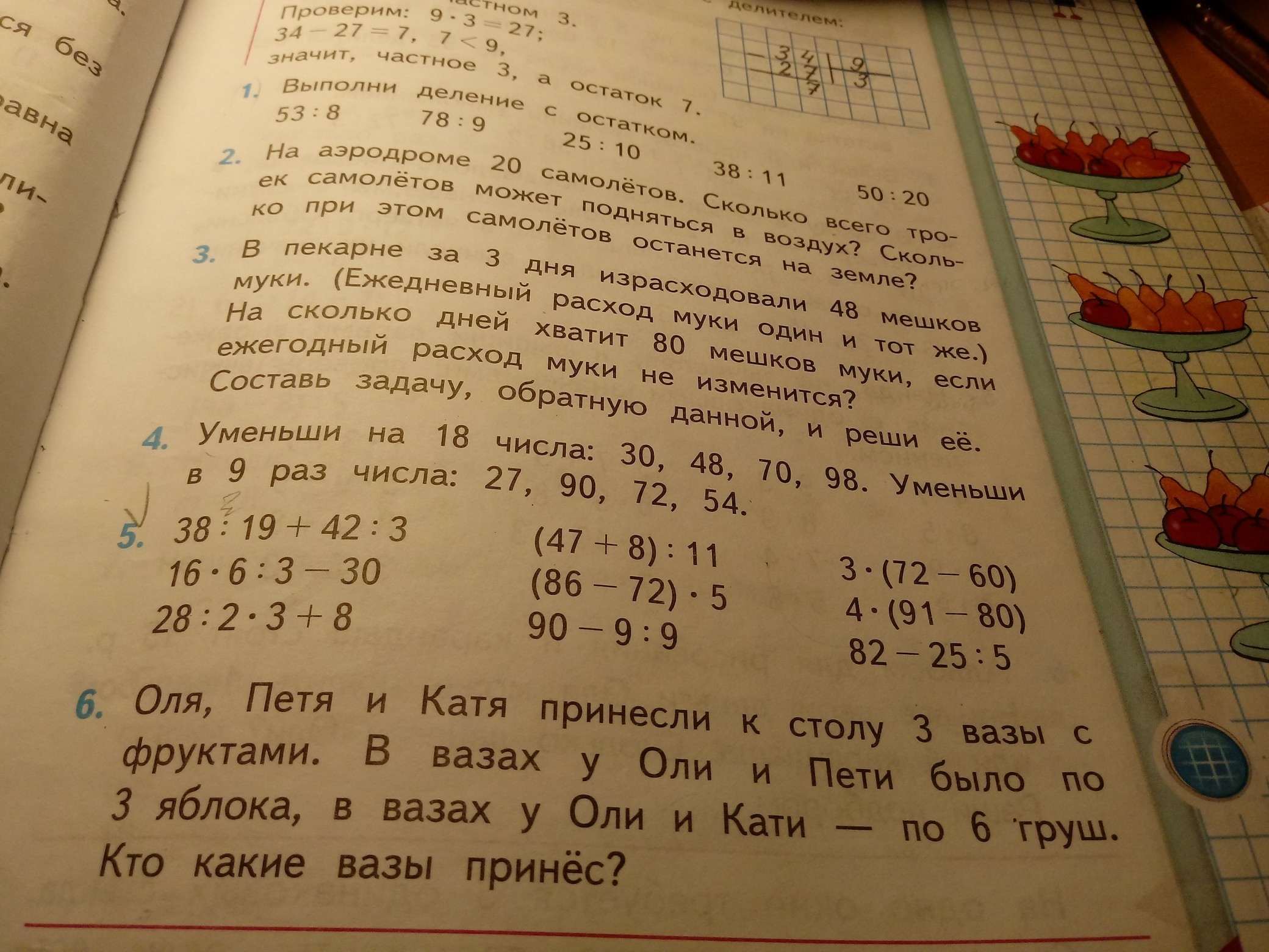 нумерую в столбик, т.е. 38:19+42:3 - номер 1, а 16*6:3-30 - номер 2
