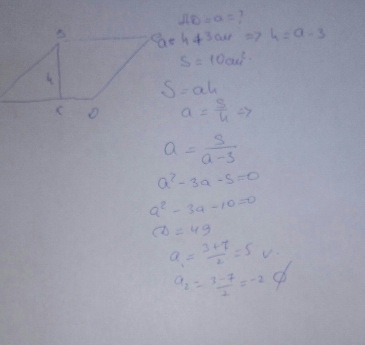 второй ответ а2=-2не удовл.так как сторона отрицательной не бывает