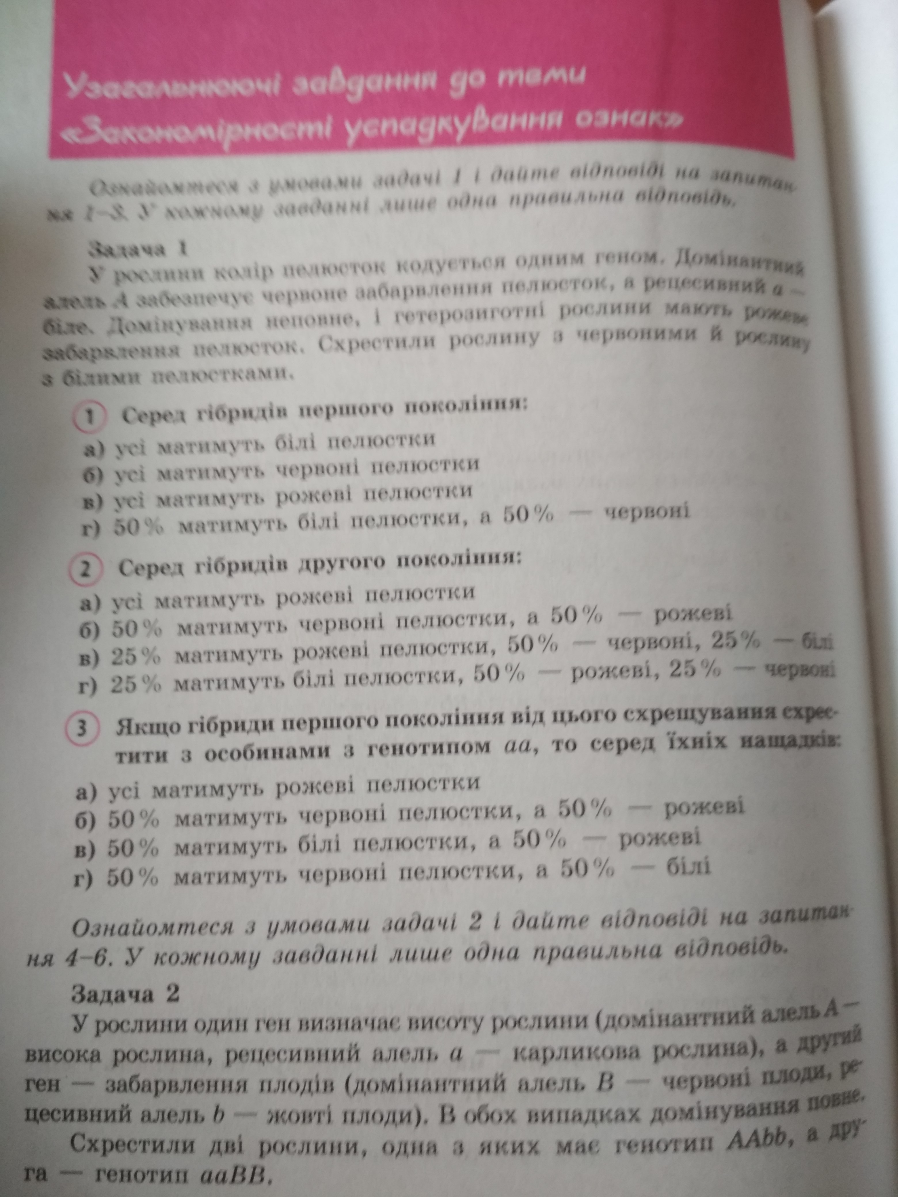 1. в) усі матимуть рож. пелюстки